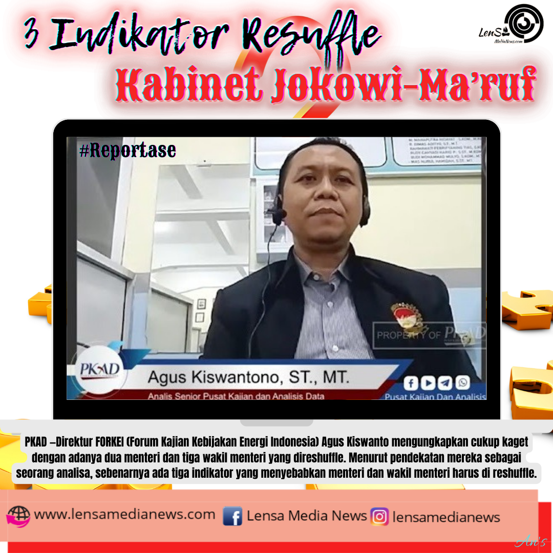 Reportase – PKAD—Direktur FORKEI (Forum Kajian Kebijakan Energi Indonesia) Agus Kiswanto mengungkapkan cukup kaget dengan adanya dua menteri dan tiga wakil menteri yang di-reshuffle. Menurut pendekatan mereka sebagai seorang analisa, sebenarnya ada tiga indikator yang menyebabkan menteri dan wakil menteri harus di-reshuffle.