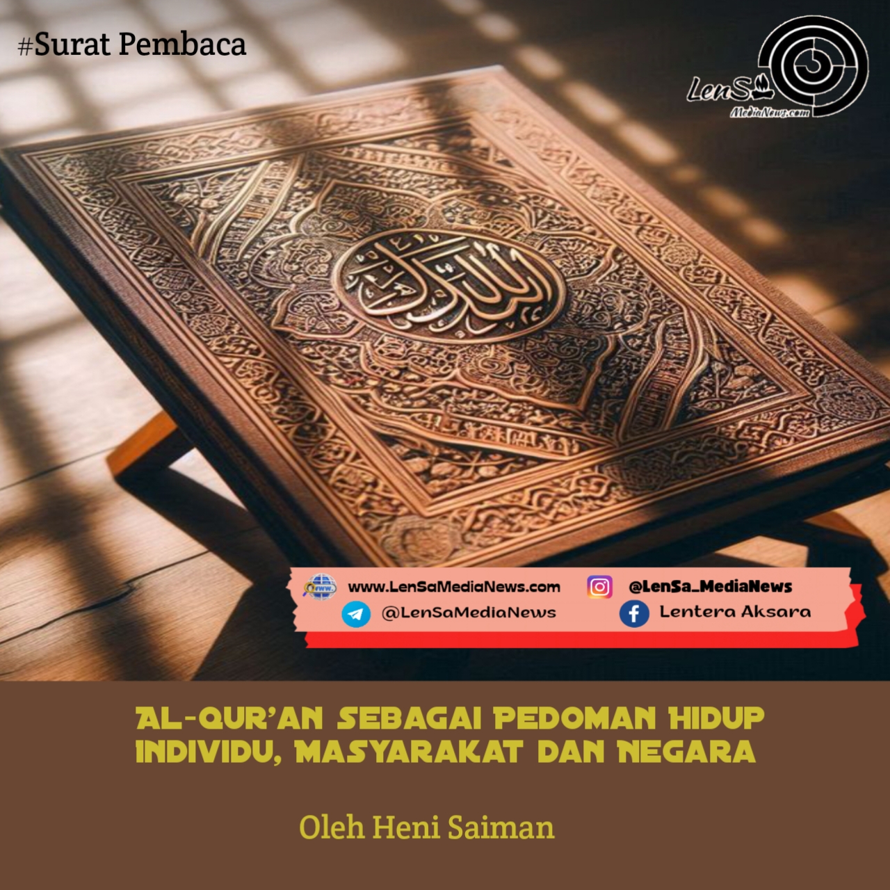Berpegang pada Al-Qur’an sejatinya adalah konsekuensi keimanan dan seharusnya terwujud pada diri setiap muslim. Apalagi jika ingin membangun peradaban manusia yang mulia, Al-Qur’an harus menjadi asas kehidupan. Namun hari ini Al-Qur’an diabaikan meski peringatan Nuzulul Qur’an setiap tahun diadakan, bahkan oleh negara.