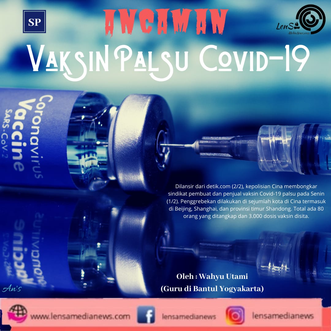 Dilansir dari detik.com (2/2), kepolisian Cina membongkar sindikat pembuat dan penjual vaksin Covid-19 palsu pada Senin (1/2). Penggrebekan dilakukan di sejumlah kota di Cina termasuk di Beijing, Shanghai, dan provinsi timur Shandong. Total ada 80 orang yang ditangkap dan 3.000 dosis vaksin disita.