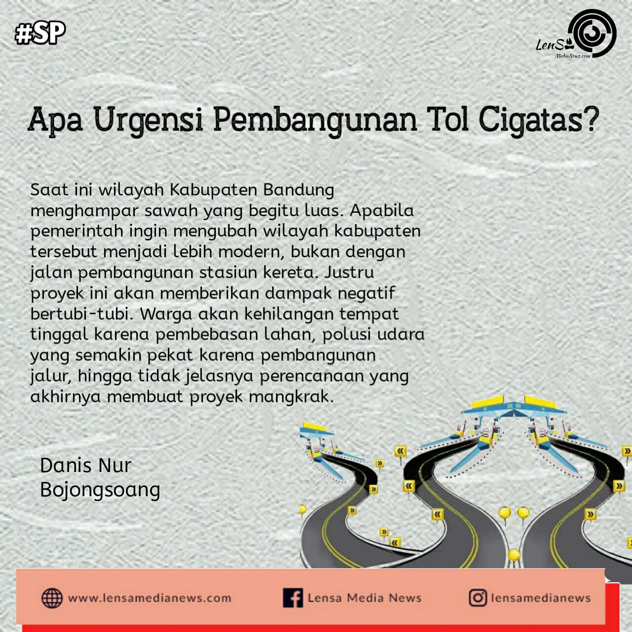 Dalih pembangunan biasa dipakai oleh pemerintah dalam setiap kebijakan yang dikeluarkan. Bicara fakta saat inipun terlihat jelas perbedaan gaya hidup masyarakat kota dengan masyarakat kampung. Tentang Kabupaten Bandung, perlu suatu kemajuan agar kehidupan masyarakat menjadi lebih modern dari sebelumnya. Maka perumusan proyek harus dikaji secara menyeluruh.