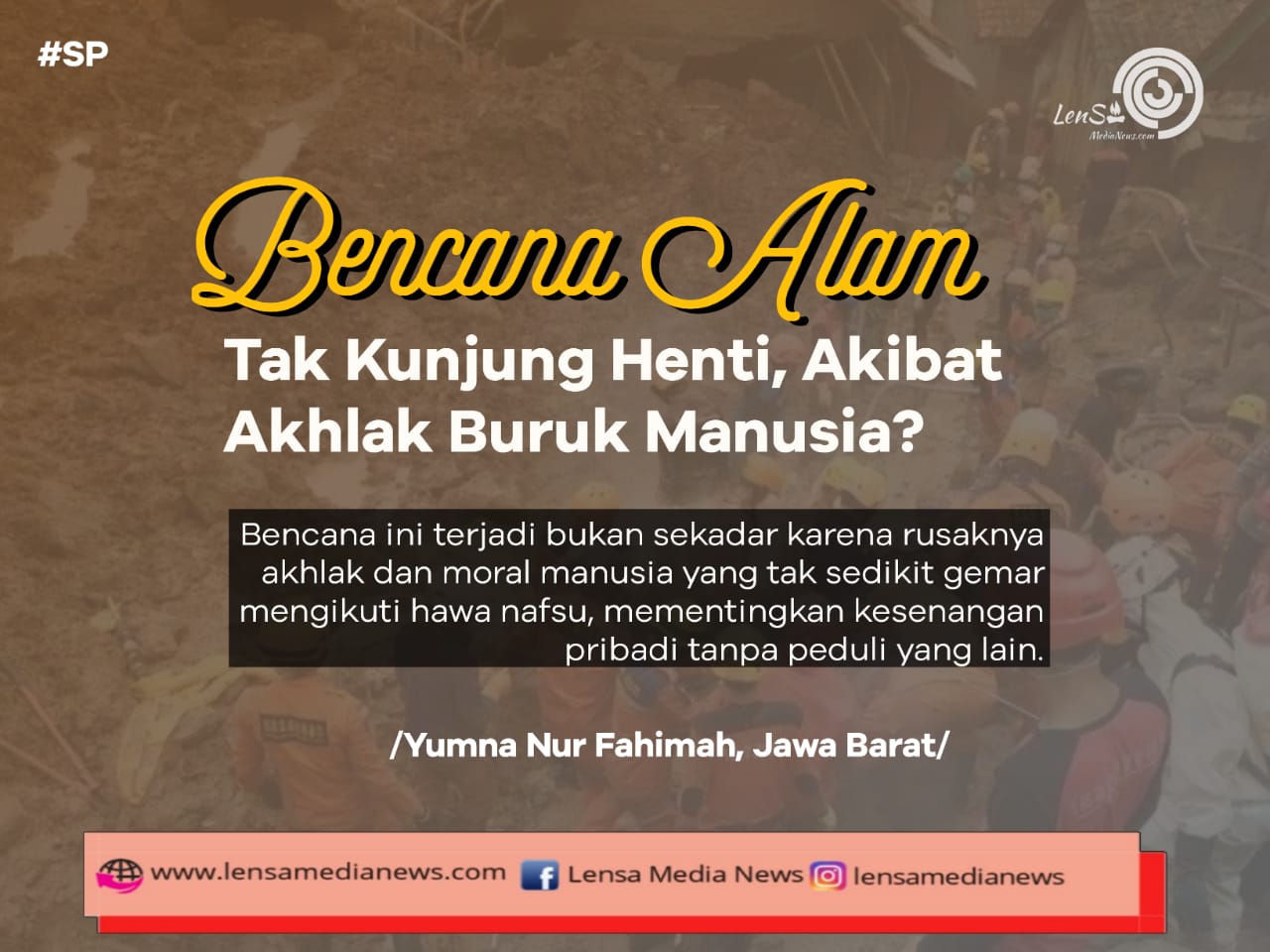 Bencana ini terjadi bukan sekadar karena rusaknya akhlak dan moral manusia yang tak sedikit gemar mengikuti hawa nafsu, mementingkan kesenangan pribadi tanpa peduli yang lain.
