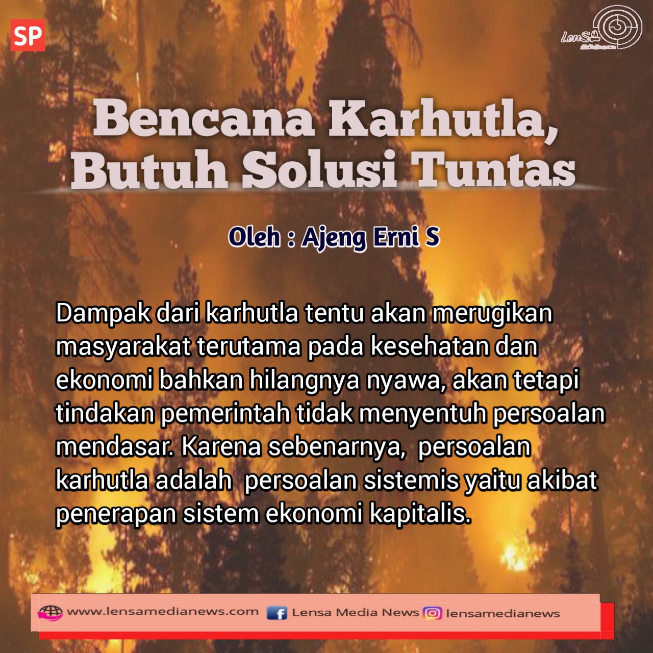 Dampak dari karhutla tentu akan merugikan masyarakat terutama pada kesehatan dan ekonomi bahkan hilangnya nyawa, akan tetapi tindakan pemerintah tidak menyentuh persoalan mendasar. Karena sebenarnya, persoalan karhutla adalah persoalan sistemis yaitu akibat penerapan sistem ekonomi kapitalis.