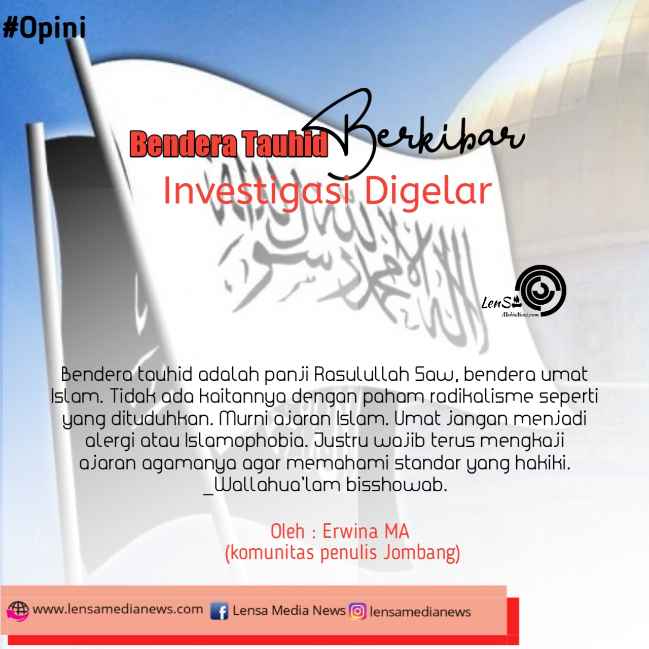 Bendera tauhid adalah panji Rasulullah Saw, bendera umat Islam. Tidak ada kaitannya dengan paham radikalisme seperti yang dituduhkan. Murni ajaran Islam. Umat jangan menjadi alergi atau Islamophobia. Justru wajib terus mengkaji ajaran agamanya agar memahami standar yang hakiki.