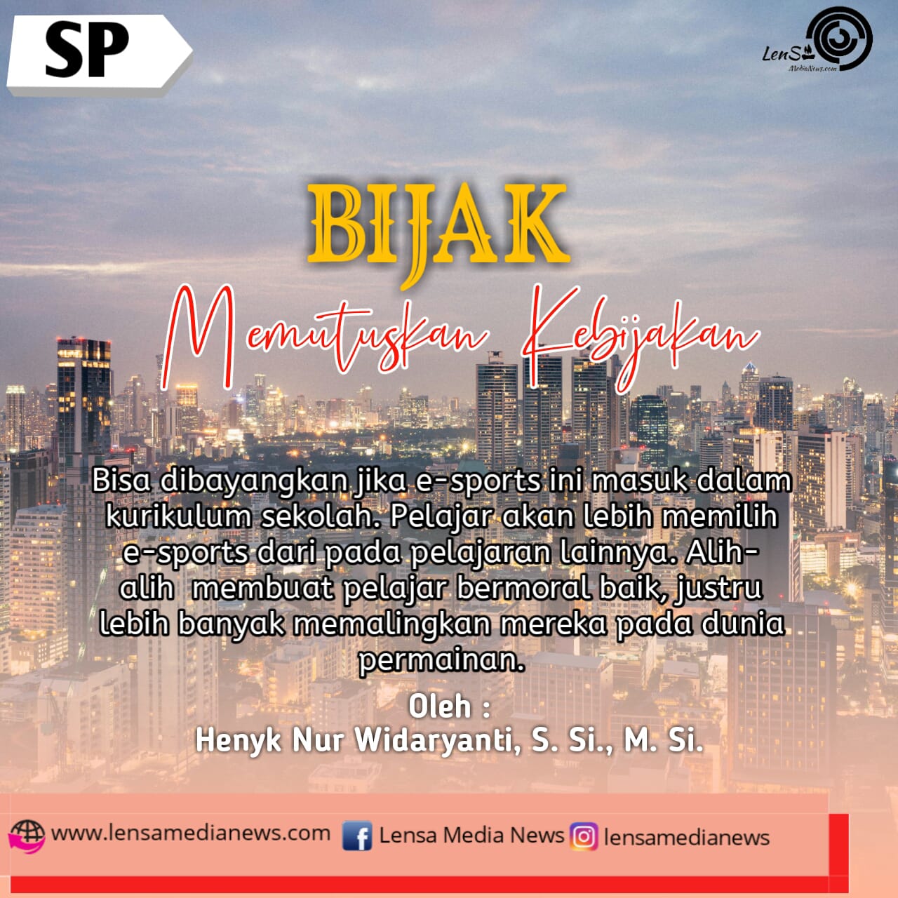 Bisa dibayangkan jika e-sports ini masuk dalam kurikulum sekolah. Pelajar akan lebih memilih e-sports dari pada pelajaran lainnya. Alih-alih membuat pelajar bermoral baik, justru lebih banyak memalingkan mereka pada dunia permainan. Kondisi ini tentunya tidak baik bagi perkembangan sikap dan mental para penerus bangsa. Bagaimana nasib bangsa ini 15 atau 20 tahun lagi, jika para generasinya hanya suka berada di dunia maya dari pada di dunia nyata? Sebaiknya kebijakan memasukkan e-sports ke kurikulum pendidikan ini perlu dikaji lagi. Sehingga para pengambil kebijakan tidak salah langkah.
