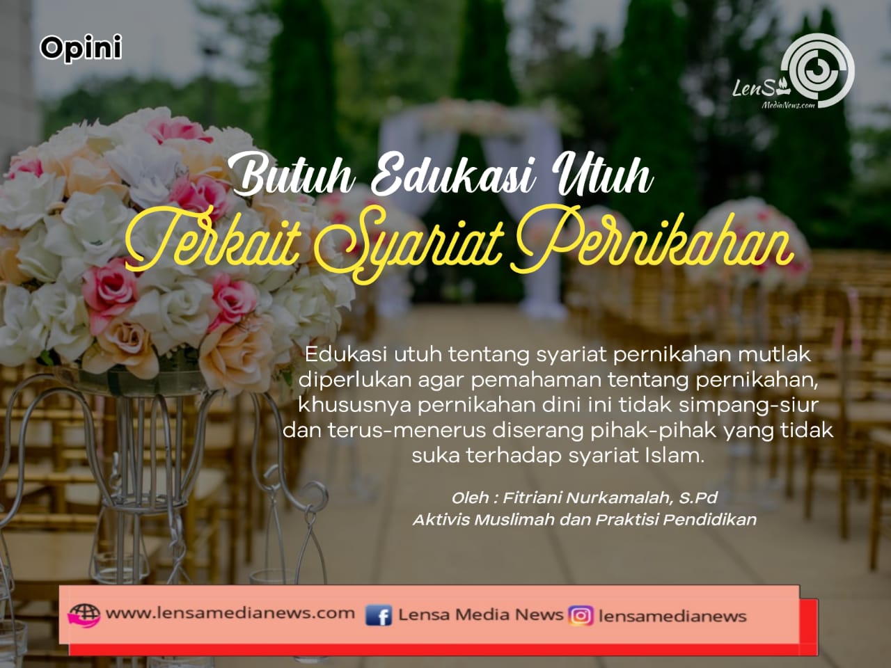Oleh karena itu, edukasi utuh tentang syariat pernikahan mutlak diperlukan agar pemahaman tentang pernikahan, khususnya pernikahan dini ini tidak simpang-siur dan terus-menerus diserang pihak-pihak yang tidak suka terhadap syariat Islam.
