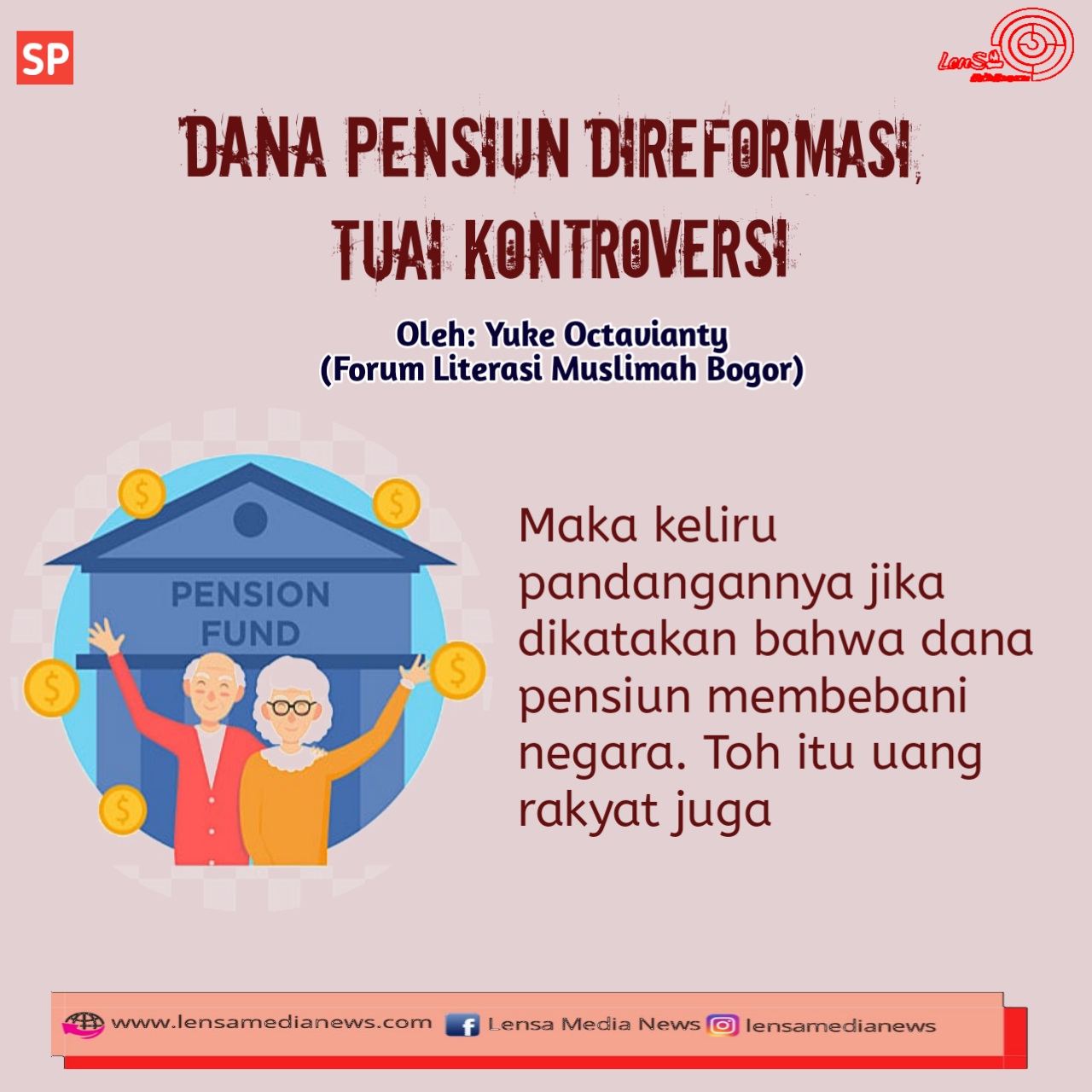 Maka keliru pandangannya jika dikatakan bahwa dana pensiun membebani negara. Toh, itu uang rakyat juga. Malah seharusnya, negara wajib mengayomi rakyatnya. Memenuhi setiap kebutuhan primer rakyat, mulai dari sandang, pangan, papan, kesehatan, pendidikan dan penyediaan lapangan kerja. Tanpa ada pungutan, yang justru membebani rakyat.