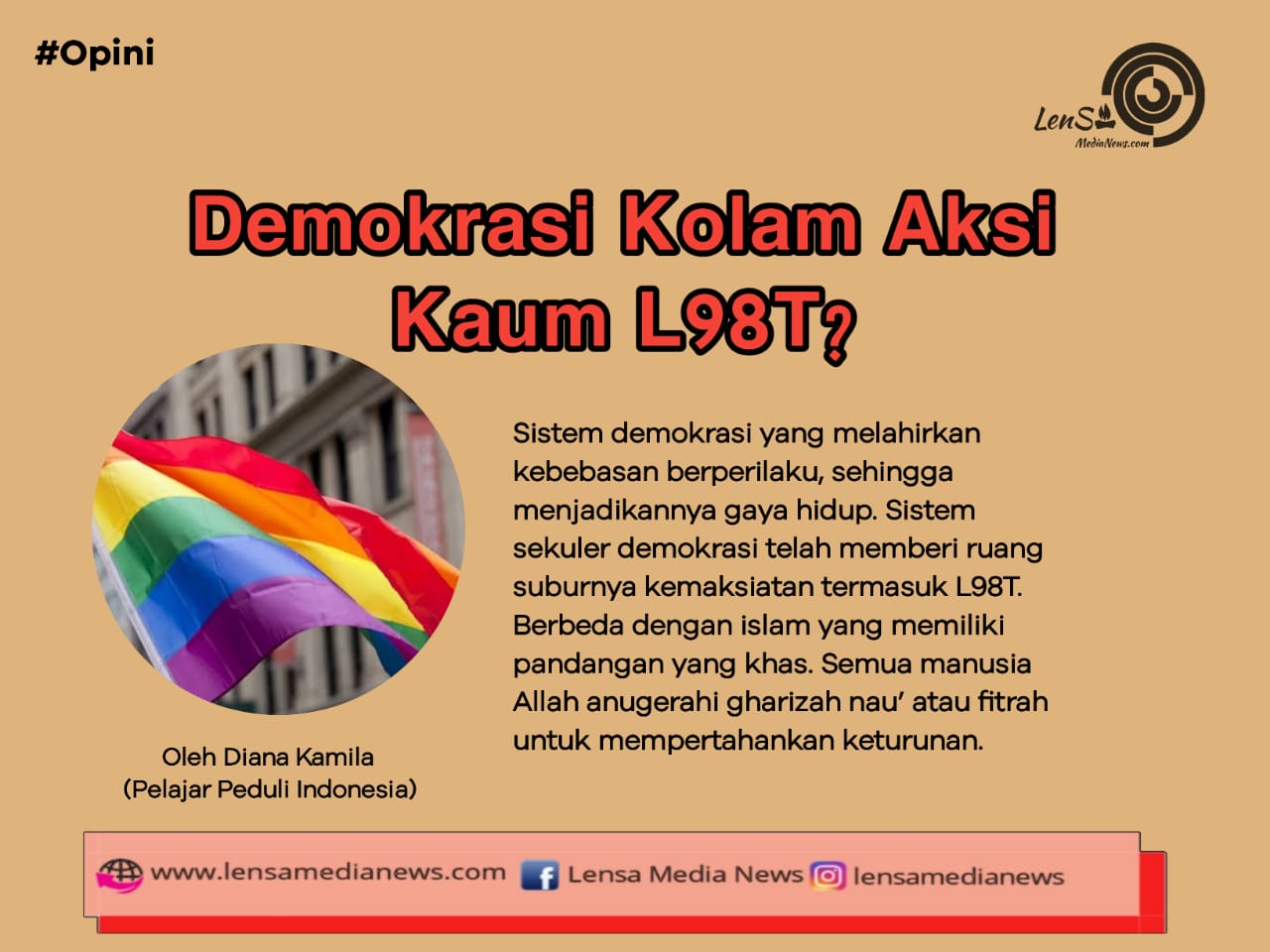 Sistem demokrasi yang melahirkan kebebasan berperilaku, sehingga menjadikannya gaya hidup. Sistem sekuler demokrasi telah memberi ruang suburnya kemaksiatan termasuk L98T. Berbeda dengan Islam yang memiliki pandangan yang khas. Semua manusia Allah anugerahi gharizah nau’ atau fitrah untuk mempertahankan keturunan. Namun, dalam konsep gay tidak akan terwujud perealisasian gharizah ini. Juga penyebaran virus L98T yang semakin masif dengan dukungan individu, kelompok bahkan negara dan badan dunia menyebabkan dampak kerusakan dan menyalahi fitrah manusia.