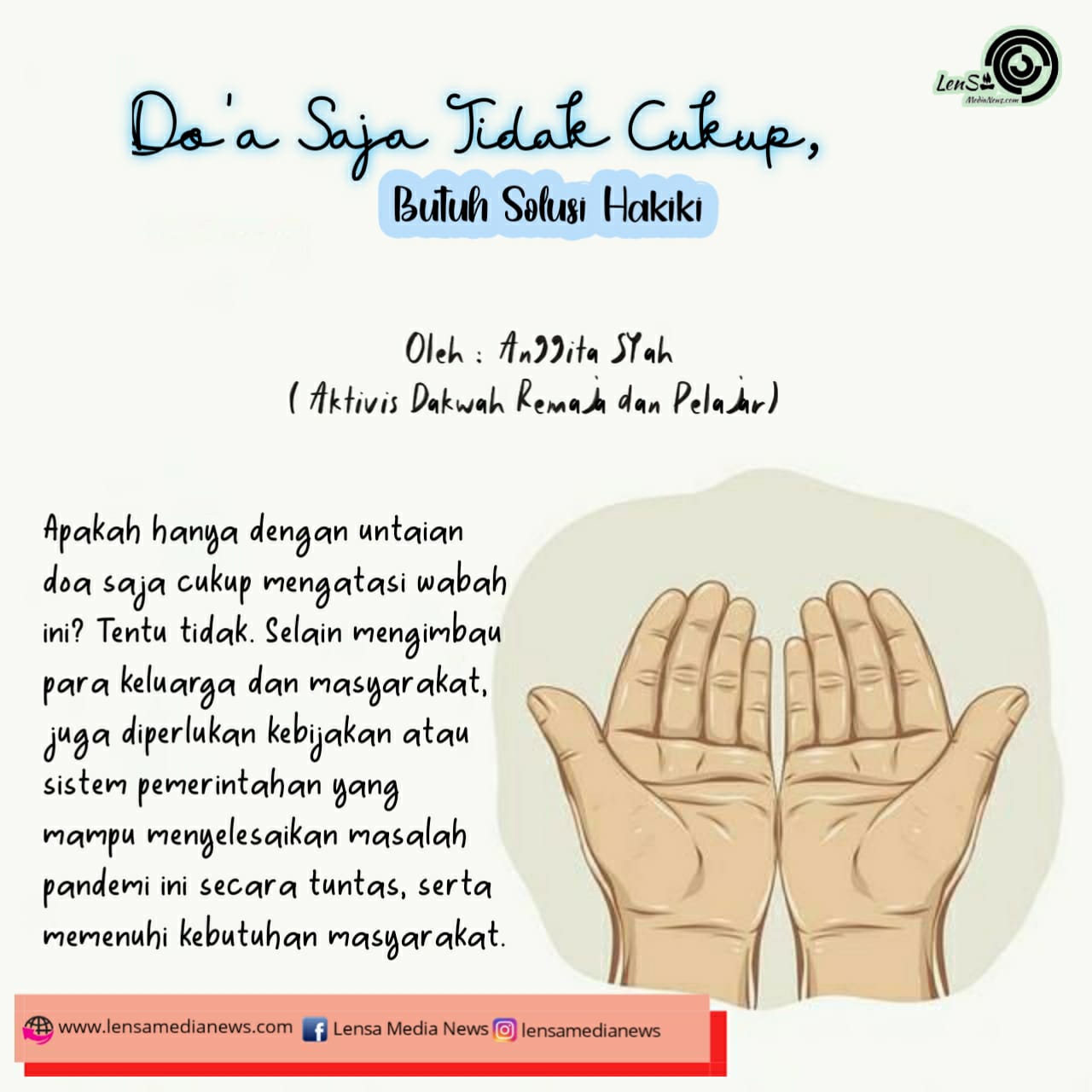Lantas, apakah hanya dengan untaian doa saja cukup mengatasi wabah ini? Tentu tidak. Selain mengimbau para keluarga dan masyarakat, juga diperlukan kebijakan atau sistem pemerintahan yang mampu menyelesaikan masalah pandemi ini secara tuntas, serta memenuhi kebutuhan masyarakat.