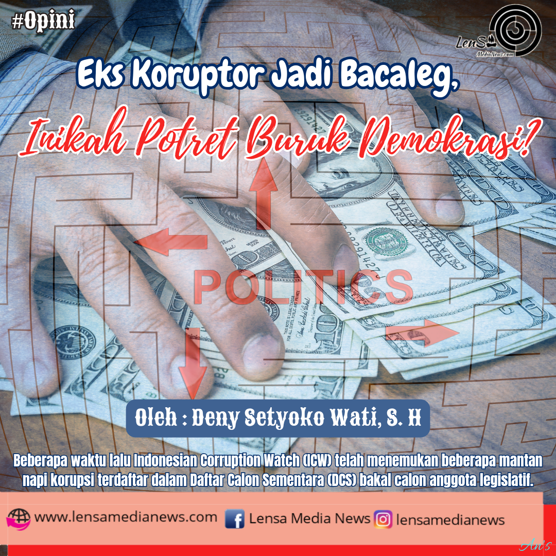LenSaMediaNews.com – Beberapa waktu lalu Indonesian Corruption Watch (ICW) telah menemukan beberapa mantan napi korupsi terdaftar dalam Daftar Calon Sementara (DCS) bakal calon anggota legislatif. Kurnia Ramadhana selaku peneliti ICW pun sangat menyayangkan hal ini. Kondisi ini berarti parpol masih memberikan kesempatan kepada eks koruptor untuk maju ke pemilu 2024. Sebelumnya di tahun 2018 lalu, Komisi Pemilihan Umum (KPU) melalui Peraturan KPU Nomor 20 Tahun 2018 sempat melarang eks koruptor mencalonkan diri sebagai peserta pemilu 2019. Namun, peraturan tersebut digugat oleh sejumlah pihak termasuk para mantan napi koruptor. Hingga akhirnya peraturan tersebut dibatalkan oleh Mahkamah Agung (MA) karena dianggap bertentangan dengan UU Pemilu dan melanggar Hak Asasi Manusia (HAM).