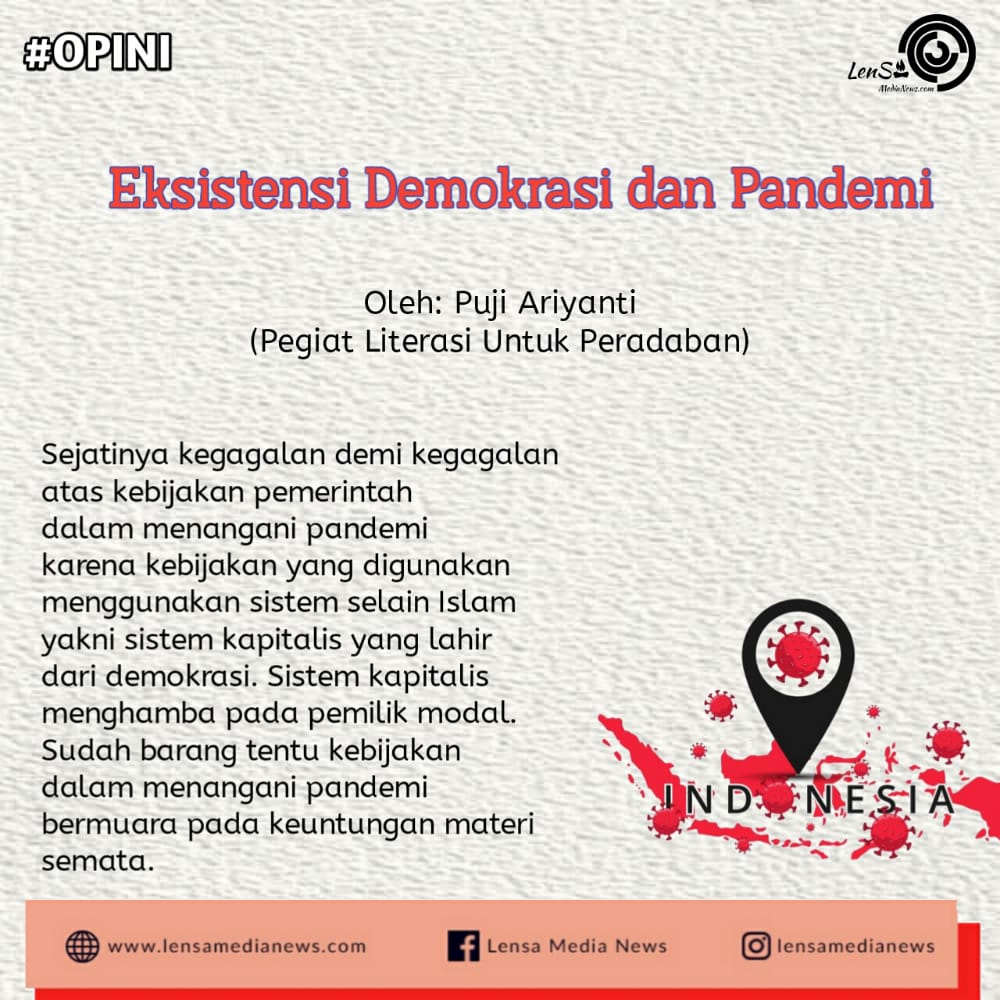 Sejatinya kegagalan demi kegagalan atas kebijakan pemerintah dalam menangani pandemi karena kebijakan yang digunakan menggunakan sistem selain Islam yakni sistem kapitalis yang lahir dari demokrasi. Sistem kapitalis menghamba pada pemilik modal. Sudah barang tentu kebijakan dalam menangani pandemi bermuara pada keuntungan materi semata.