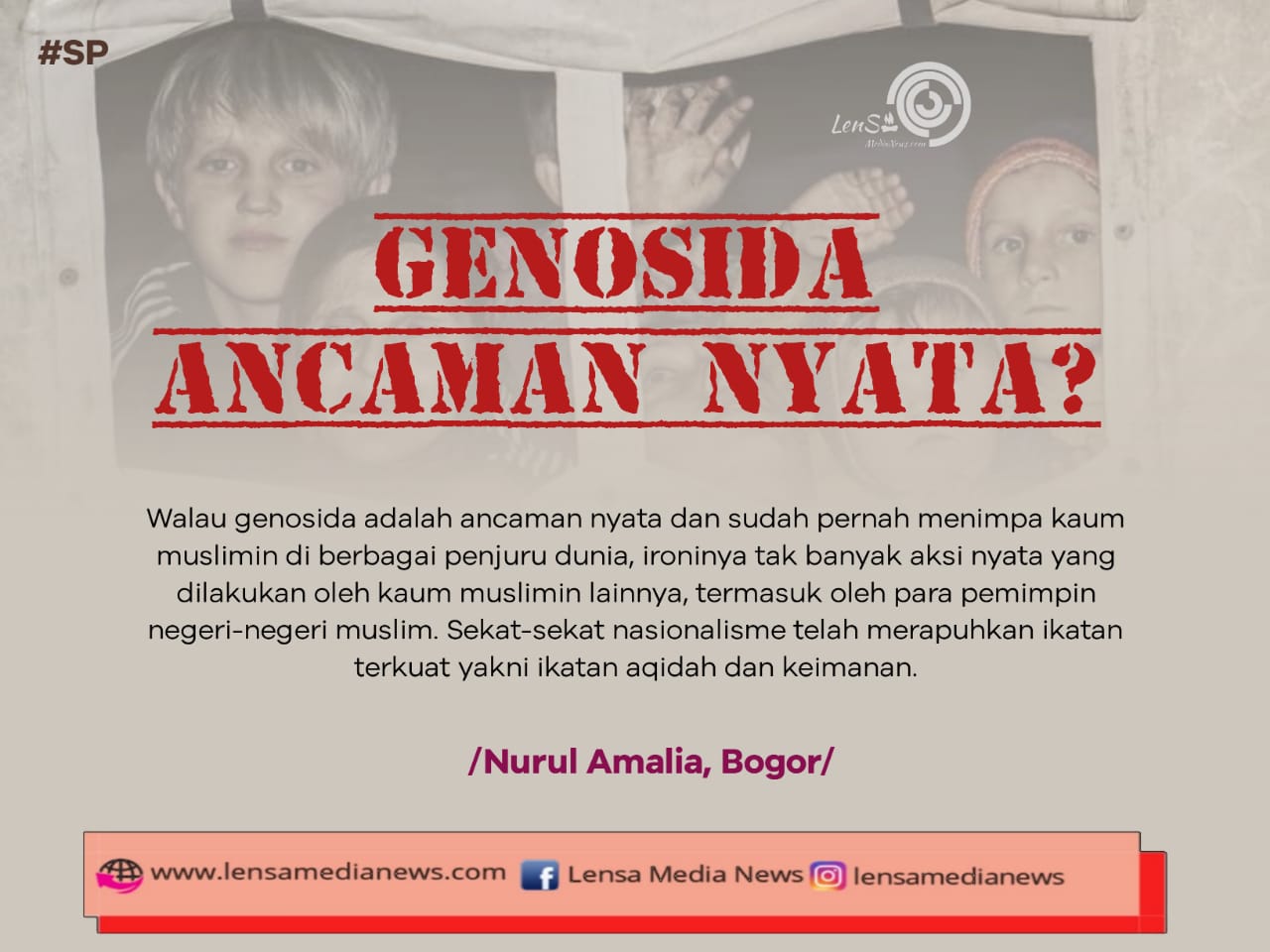 Walau genosida adalah ancaman nyata dan sudah pernah menimpa kaum muslimin di berbagai penjuru dunia, ironinya tak banyak aksi nyata yang dilakukan oleh kaum muslimin lainnya, termasuk oleh para pemimpin negeri-negeri muslim. Sekat-sekat nasionalisme telah merapuhkan ikatan terkuat yakni ikatan akidah dan keimanan.