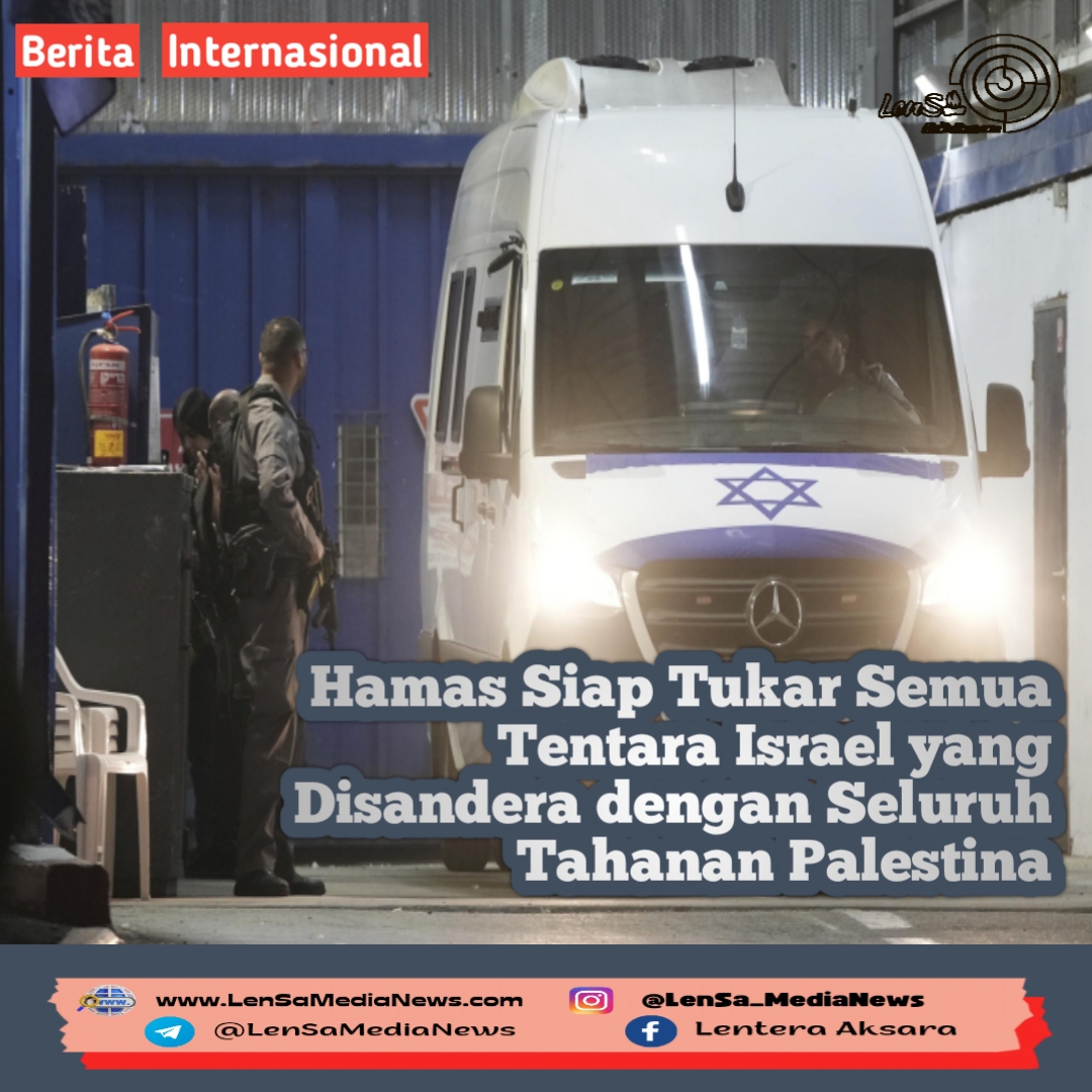 Lensa Media News—Kelompok Hamas mengatakan mereka siap membebaskan semua tentara Israel yang ditawannya. Sebagai imbalannya, Hamas meminta Israel membebaskan semua tahanan Palestina dari penjara-penjara di negara tersebut.