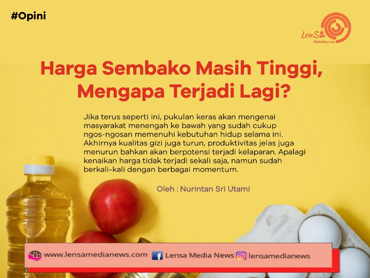 Lensa Media News – Ibu-ibu rumah tangga menengah ke bawah juga pelaku UMKM sedang dipusingkan dengan harga sembako yang terus naik dan susah turun. Sejumlah komoditas pangan masih jauh dari harga normal, seperti harga cabai rawit merah, minyak goreng hingga telur ayam. Tingginya harga ini terjadi sejak mendekati natal dan berlanjut hingga tahun baru. Berdasarkan data di Jawa Timur, harga minyak goreng rata-rata 19 ribu per kg, cabai rawit merah 57 ribu per kg, telur ayam 40 ribu per kg (kabarbesuki.pikiran-rakyat.com, 5/1/2022). Harga cabai rawit diketahui telah mengalami penurunan, namun minyak goreng dan telur stabil dengan harga tinggi.
