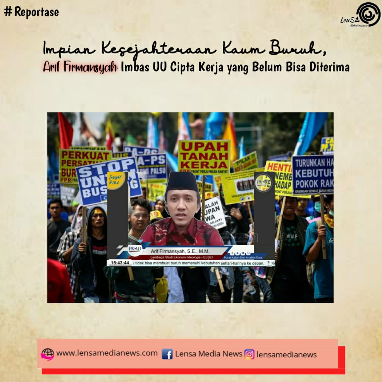Reportase – PKAD — Insight ke 104 Pusat Kajian dan Analisis Data Senin (22/11/2021) mengurai masalah yang sangat penting yakni “UMP 2022 Naik : Huru Hara Nasib Pekerja Imbas UU Cipta Kerja”. Sangat menarik ulasan yang disampaikan oleh Arif Firmansyah S.E, M.M dari Lembaga Studi Ekonomi Ideologis – ELSEI terkait Impian Kesejahteraan bagi Kaum Buruh.