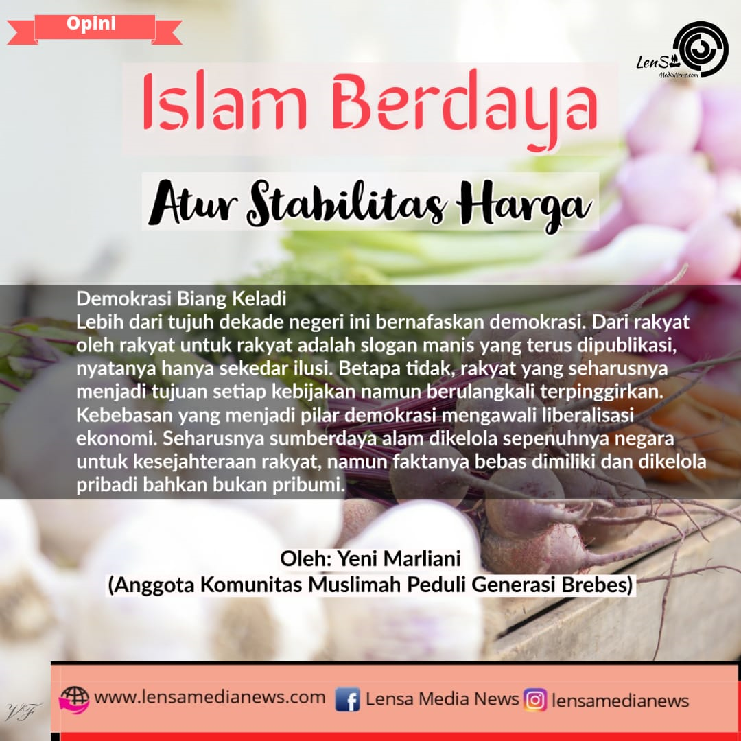 Dalam hal ini, jika sesuai sistem Islam maka pemerintah sebagai pengelola yang mewakili rakyat mengatur pemanfaatannya. Sehingga seluruh rakyat dapat mengakses dan mendapatkan manfaat secara adil. Segala potensi pemenuhan bahan pokok dikelola pemerintah secara optimal dari hulu hingga hilir. Strategi pemetaan produksi hingga tingkat konsumsi ditangani pemerintah secara tepat. Dengan demikian, Islam menjadikan pemerintah berdaya dalam menjamin kebutuhan bahan pokok dan stabilitas harga.