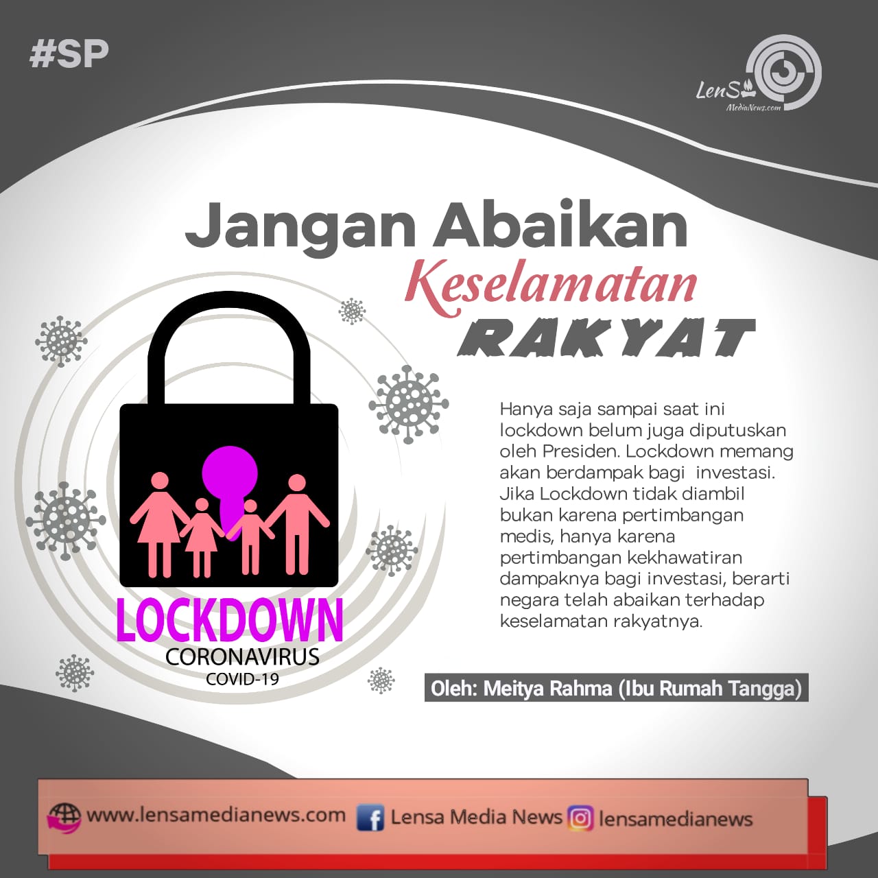 Hanya saja sampai saat ini lockdown belum juga diputuskan oleh Presiden. Lockdown memang akan berdampak bagi investasi. Jika lockdown tidak diambil bukan karena pertimbangan medis, hanya karena pertimbangan kekhawatiran dampaknya bagi investasi, berarti negara telah abaikan terhadap keselamatan rakyatnya.