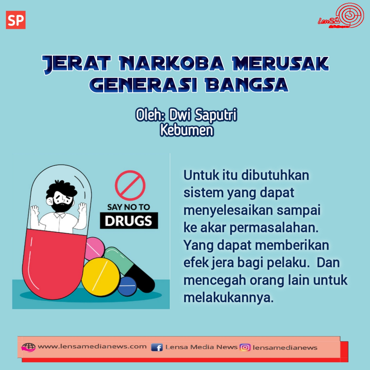 Maka dari itu, dibutuhkan negara yang dapat menerapkan sistem Islam secara kaffah . Yang dapat menyelesaikan akar permasalahan. Dan menciptakan generasi muda yang Islami dan jauh dari jerat narkoba. Wallahu’alam bi showab. Dwi Saputri, Kebumen. [LM/IF/ry]