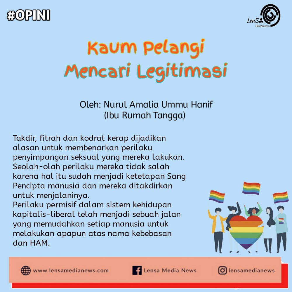 Ditambah dengan aturan dari negara yang belum bisa mengembalikan para pelaku penyimpangan ini kepada fitrah dan kodratnya. Alih-alih menindak tegas para pelaku yang perbuatannya sudah jelas menyalahi agama dan moralitas, justru memperlakukan mereka dengan penuh simpati sehingga mereka merasa perbuatannya tidak melanggar norma apapun. Dukungan dari para kapital yang mempunyai kepentingan bisnis dan maraknya pemberitaan media yang menjadi sumber informasi tentang kaum pelangi sekaligus menjadi penyebar paham sesat penyimpangan seperti ini.