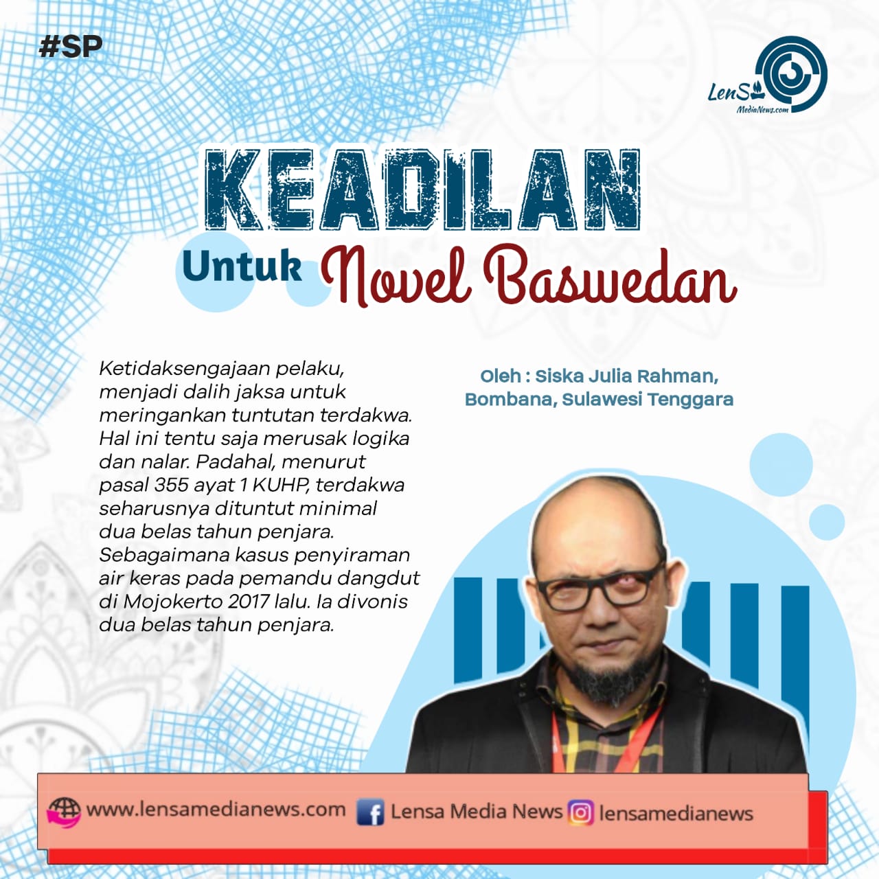 Dengan keputusan ini, membuktikan bahwa keadilan di negeri ini sudah mati. Ketidakadilan tidak hanya dirasakan oleh Novel Baswedan. Banyak di luar sana yang senasib, bahkan tak kalah tragis.