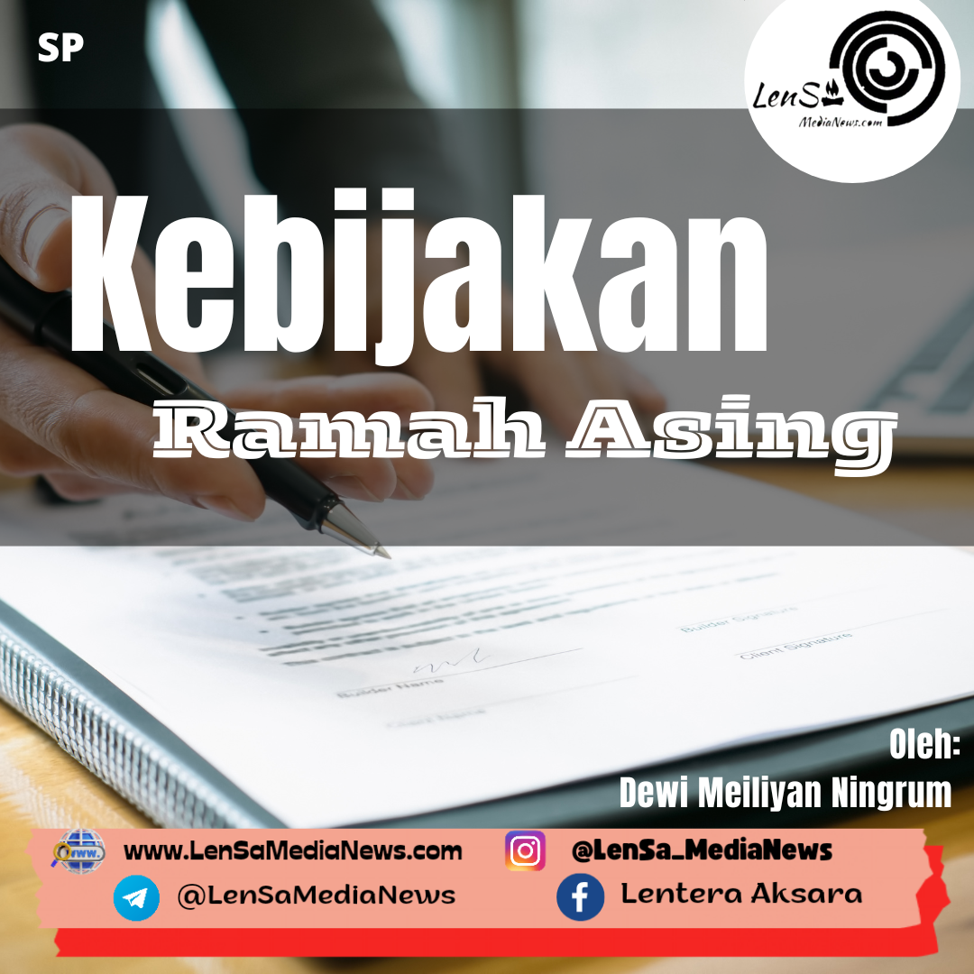 Lensa Media News, Surat Pembaca- Banyak upaya yang dilakukan pemerintah untuk menarik minat pihak asing agar mau menjadi investor di negeri ini. Salah satunya yaitu dengan menerbitkan Peraturan Menteri Hukum dan HAM (Permenkumham) Nomor 22 tahun 2023 tentang Visa dan Izin Tinggal serta Peraturan Menteri Keuangan Nomor 82 tahun 2023 yang disahkan 30 Agustus 2023 lalu. Golden visa ini diberikan pada pihak asing baik individu maupun perorangan berupa izin tinggal dalam kurun waktu paling lama sepuluh tahun. Kebijakan tersebut dibuat dengan tujuan menarik minat asing untuk berinvestasi ke Indonesia. Pemerintah pun serius untuk melakukan pendalaman sebelum akhirnya kebijakan ini diterapkan.