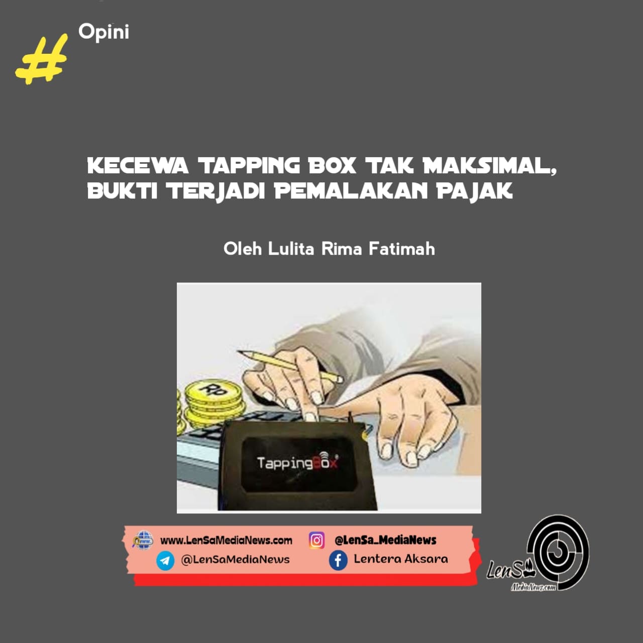 LensaMediaNews.com, Opini_ Belum lama ini Komisi C DPRD Kebumen melakukan inspeksi mendadak (sidak) ke beberapa hotel dan restoran. Sidak ini dilakukan terhadap penerapan tapping box yang merupakan alat pencatat transaksi restoran/hotel untuk pajak daerah. Komisi C DPRD Kebumen tampak kecewa karena tapping box ternyata tidak berfungsi realtime dan pencatatan pajak bergantung pada input manual dari wajib pajak.