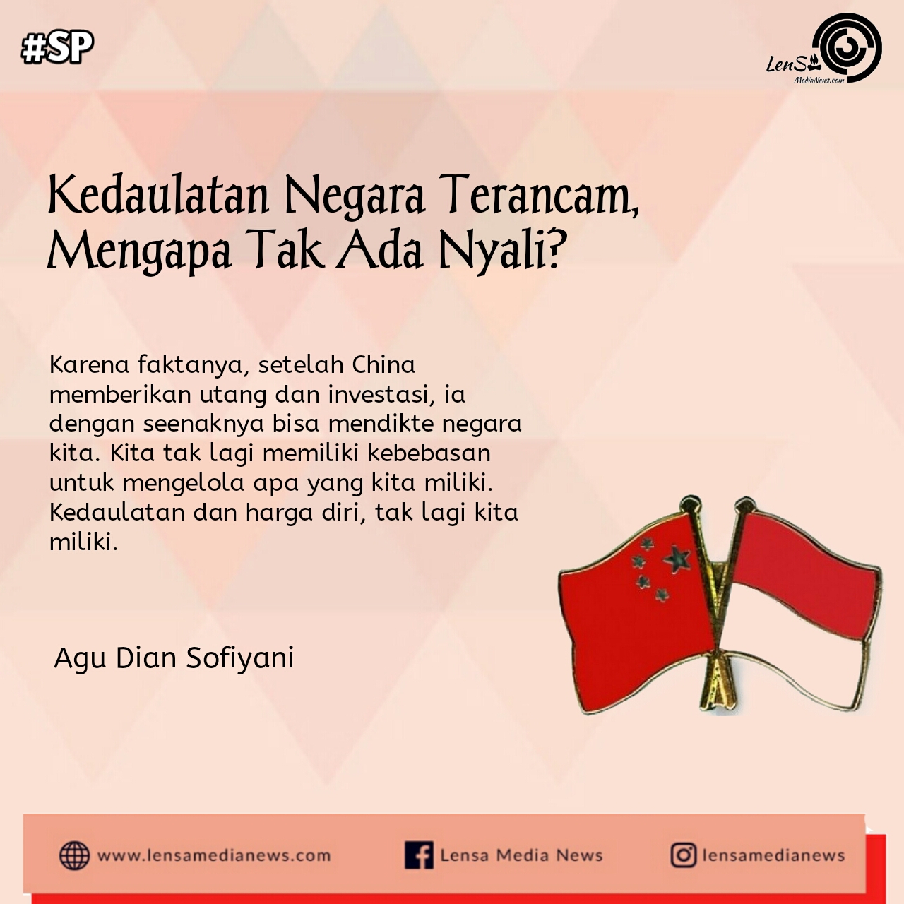 Karena faktanya, setelah China memberikan utang dan investasi, ia dengan seenaknya bisa mendikte negara kita. Kita tak lagi memiliki kebebasan untuk mengelola apa yang kita miliki. Kedaulatan dan harga diri, tak lagi kita miliki.