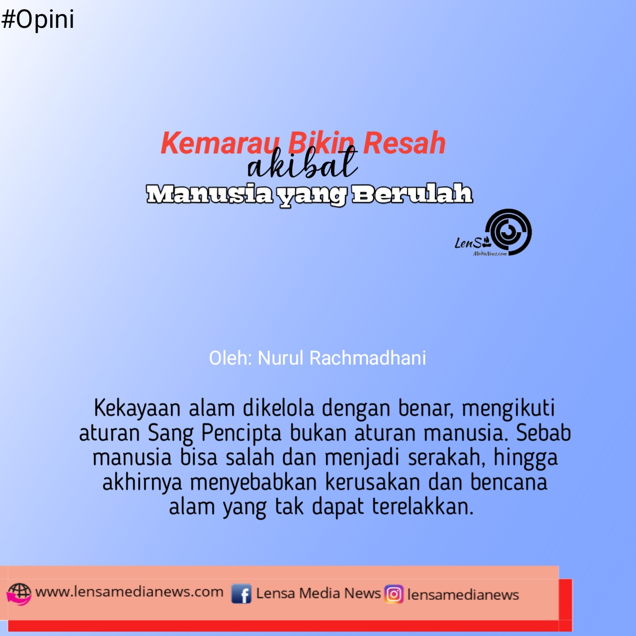 Kekayaan alam dikelola dengan benar, mengikuti aturan Sang Pencipta bukan aturan manusia. Sebab manusia bisa salah dan menjadi serakah, hingga akhirnya menyebabkan kerusakan dan bencana alam yang tak dapat terelakkan.