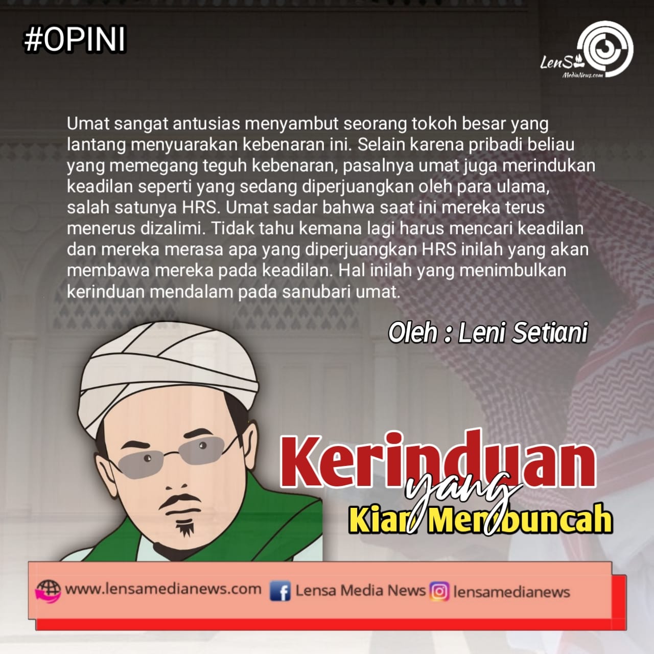 Lensa Media News – Pada 10 November, bertepatan dengan Hari Pahlawan, Habib Rizieq Shihab menginjakkan kakinya ke tanah air. Setelah 3,5 tahun lamanya menetap di Arab Saudi, akhirnya beliau kembali (Jakarta.suara.com, 10/11/2020). Umat pun menyambut dengan kerinduan yang sangat mendalam. Setibanya beliau di Bandara Soekarno Hatta, lautan manusia menyambutnya. Ghirah Islam muncul ke permukaan, melihat sosok Habib Rizieq Shihab mengingatkan pada kekasih kita semua, Rasulullah SAW. Beliau ulama yang patut dijadikan panutan.