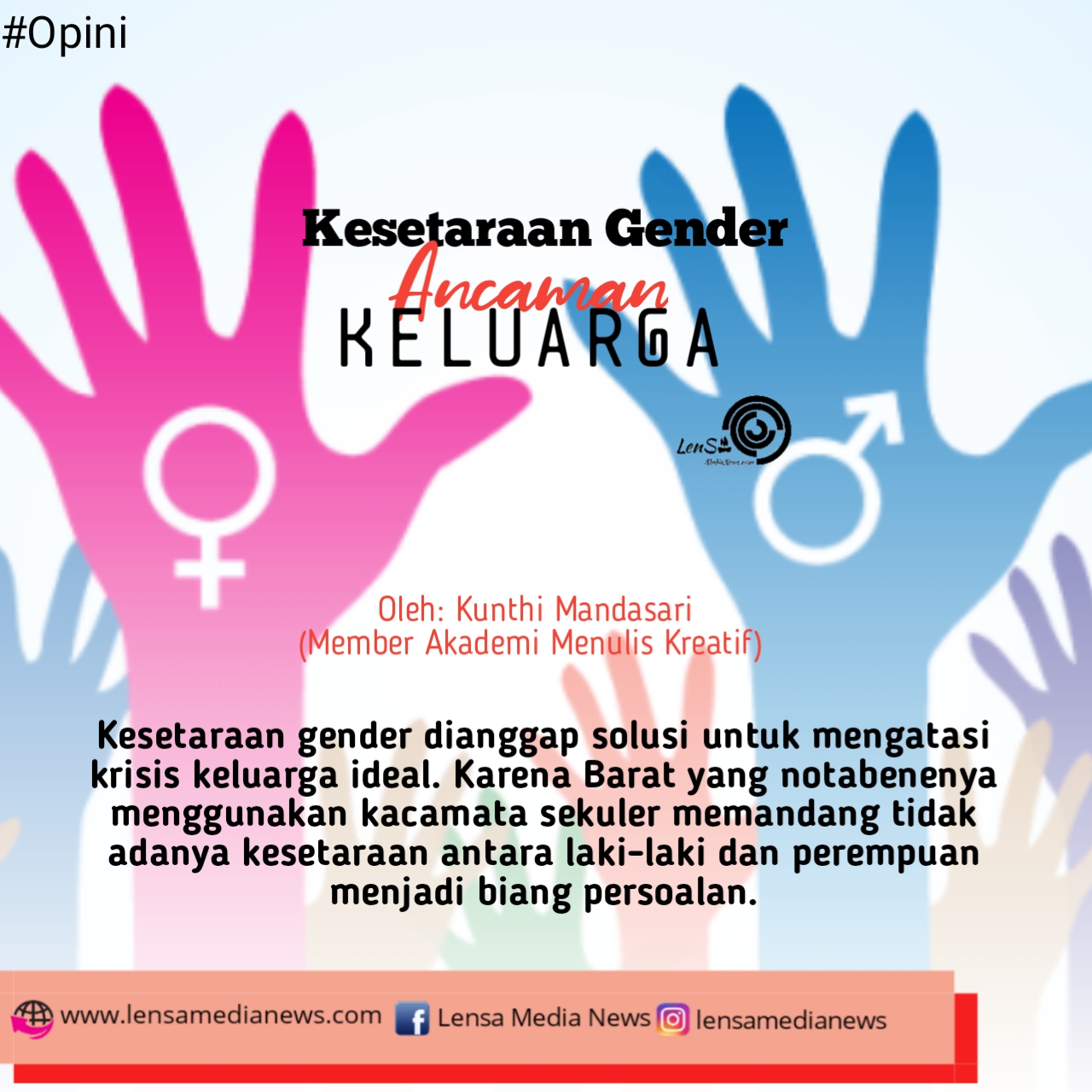 Padahal keluarga memiliki peranan yang sangat penting dalam susunan masyarakat. Keluarga yang ideal akan melahirkan generasi cemerlang. Namun, upaya mewujudkan keluarga ideal akan sulit untuk dilakukan. Mengingat virus kesetaraan gender mulai disusupkan ke ranah keluarga.