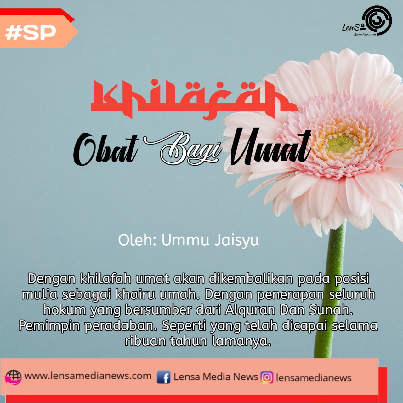 Khilafah adalah obat mujarab bagi sakitnya seluruh tubuh umat. Sumber daya alam yang dirampas, keadilan yang diabaikan hingga kezaliman merajalela. Dan segudang masalah lainnya.