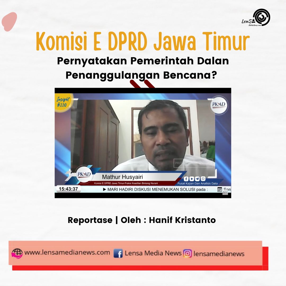 PKAD: Live Insight# 110 Youtube chanel Pusat Kajian dan Analisis Data (PKAD) Senin, (06/12/2021) bertajuk, “Jawa Timur (Siaga) Menuju Bencana?” Menghadirkan anggota Komisi E DPRD JAWA TIMUR, Fraksi Keadilan Bintang Nurani, Mathur Husyairi. Dalam diskusi online tersebut, Mathur, memulai penyampaiannya dengan mengingatkan setiap manusia adalah khalifah yang diberikan amanah dan menjadi tanggung jawab besar bagi siapa saja yang diberikan amanah kekuasaan.”