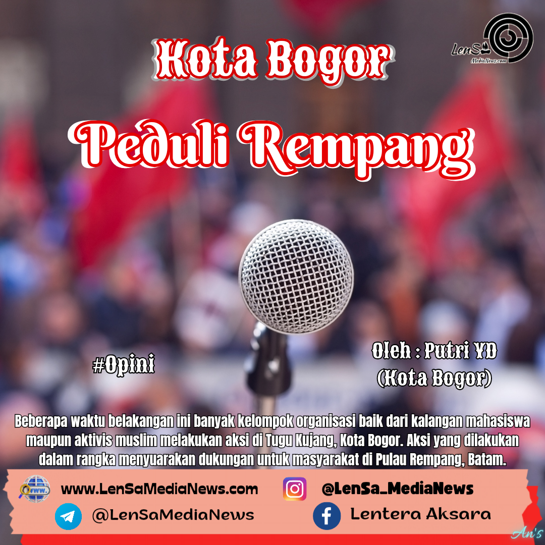 LenSaMediaNews.com – Beberapa waktu belakangan ini banyak kelompok organisasi baik dari kalangan mahasiswa maupun aktivis muslim melakukan aksi di Tugu Kujang, Kota Bogor. Aksi yang dilakukan dalam rangka menyuarakan dukungan untuk masyarakat di Pulau Rempang, Batam.