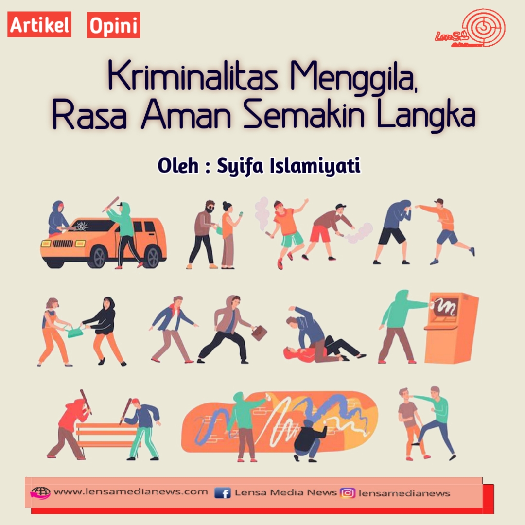 Lensa Media News-Belum lama ini warga Riau digegerkan oleh seorang pria yang tewas bersimbah darah di tepi Jalan SM Amin Kota Pekanbaru. Polisi masih menyelidiki motif kejadian tersebut. Namun diduga pria tersebut adalah korban begal (detikSumut.com, 4/5/2023). Kasus kriminalitas lain juga terjadi di Mamuju Tengah, Sulawesi Barat. Seorang wanita tewas mengenaskan dibunuh oleh tiga orang keluarganya. Motifnya diketahui karena pelaku ingin menguasai harta si korban berupa kebun sawit dan peternakan sapi (detikSulsel.com, 3/5/2023). Dan masih banyak lagi deretan kasus kriminalitas yang menghiasi media akhir-akhir ini.