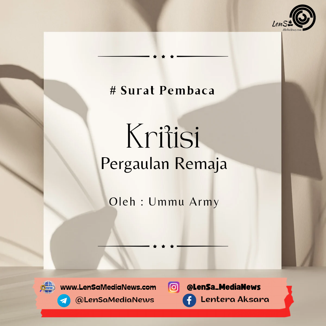 Maka sudah seharusnya, persoalan dalam pergaulan remaja lebih dikritisi. Adanya kerjasama antara peran orang tua, masyarakat dan negara yang menjaga. Pahamkan aturan agama pada generasi muda supaya dalam kehidupannya bisa dijalankan sesuai syara. Tidak adanya pemisahan agama dari kehidupan, sehingga tidak mudah untuk melakukan maksiat. Jaga generasi dari tindak aborsi. Wallahu’alam.