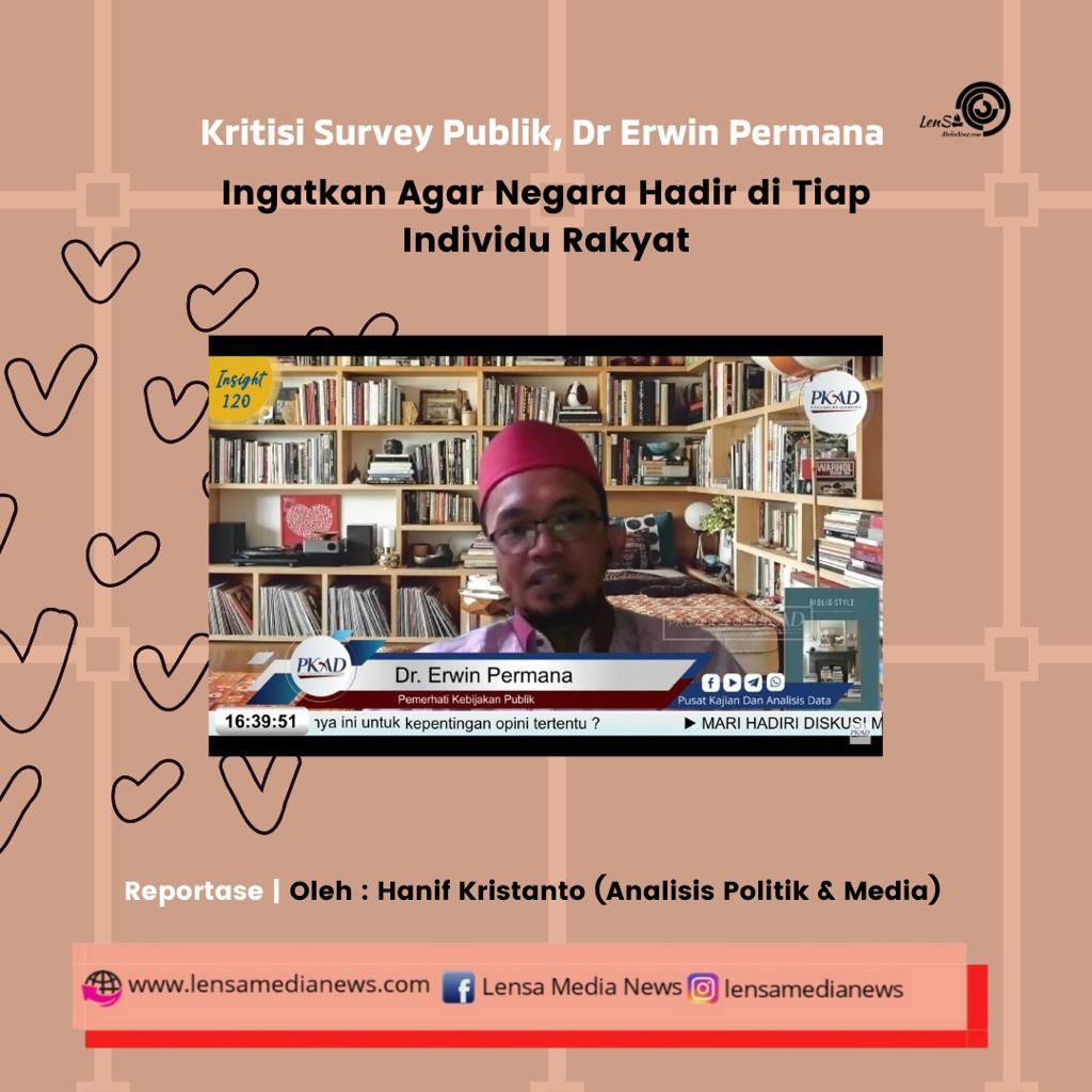 Kritisi Survey Publik, Dr Erwin Permana Ingatkan Agar Negara Hadir di Tiap Individu Rakyat