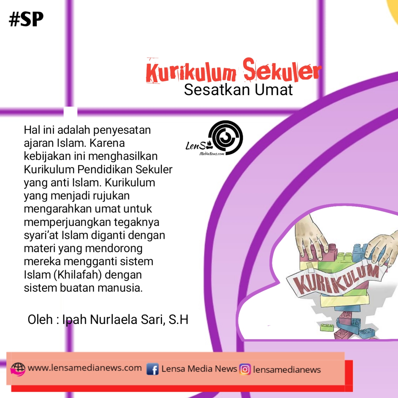 Hal ini adalah penyesatan ajaran Islam. Karena kebijakan ini menghasilkan Kurikulum Pendidikan Sekuler yang anti Islam. Kurikulum yang menjadi rujukan mengarahkan umat untuk memperjuangkan tegaknya syari’at Islam diganti dengan materi yang mendorong mereka mengganti sistem Islam (Khilafah) dengan sistem buatan manusia. Padahal Khilafah adalah sistem pemerintahan dalam Islam yang wajib bagi setiap muslim untuk menegakkannya.