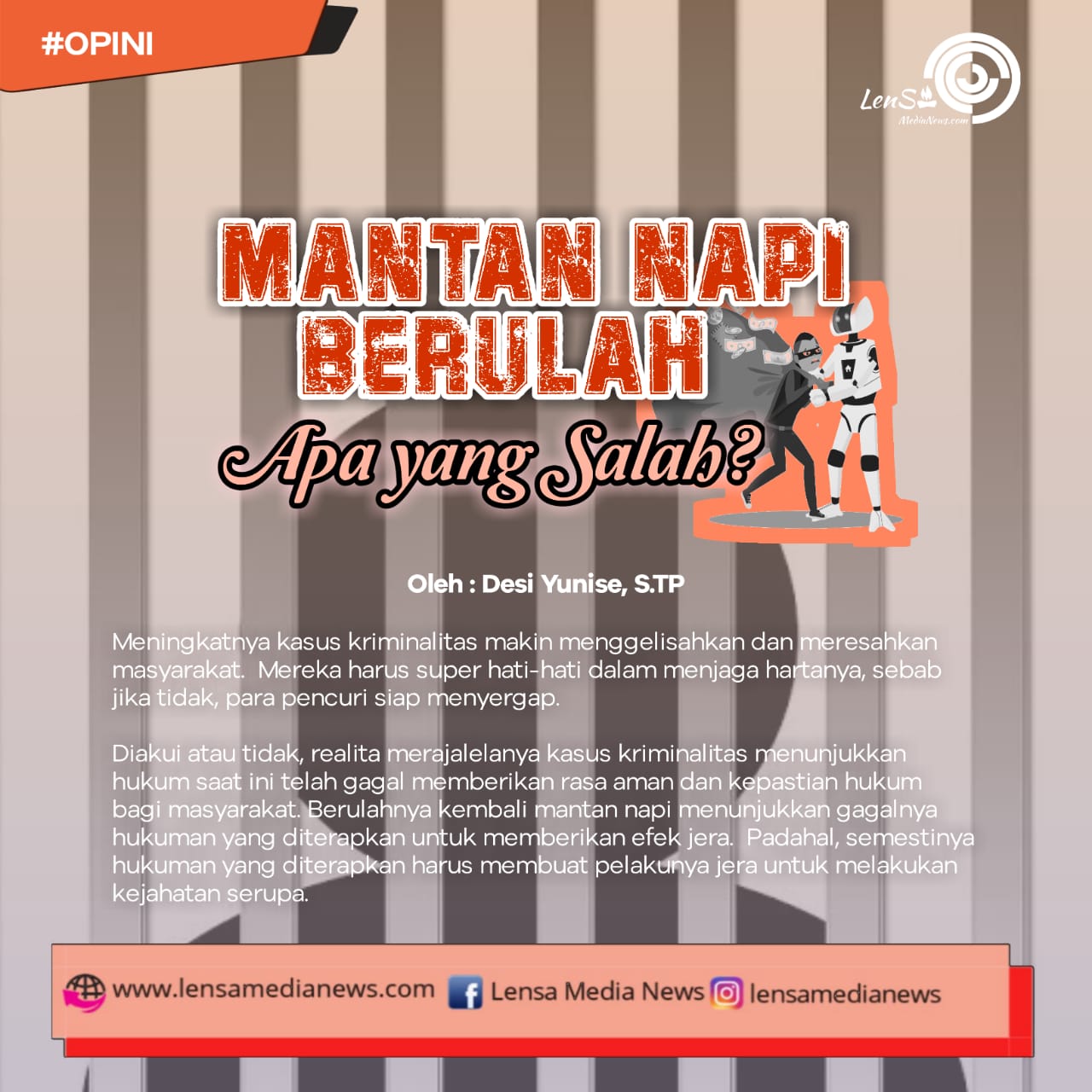LensaMediaNews— Sederet kasus aksi kriminal mantan napi kembali mencuat. Meningkatnya tingkat kriminal di berbagai daerah diakui oleh Kasat Reskrim Polres Tanjungpinang AKP Rio Reza Parindra saat di konfirmasi sidaknew.com via WA nya (Sidaknews.com, 10/4/2020).