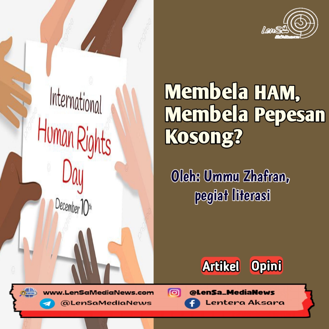 Lensa Media News–Konon, Hak Asasi Manusia (HAM) diartikan sebagai hak mendasar yang melekat dan dimiliki oleh setiap manusia sejak lahir, sebagai anugerah dari Tuhan Yang Maha Esa. Kalimat terakhir patut digarisbawahi. Artinya HAM mutlak bersifat universal, sudah seharusnya berlaku bagi semua manusia, dengan tanpa memandang ras, suku, etnik, agama dan kedudukan seorang di dalam masyarakat. Ketika diadopsi serta disahkan oleh Majelis Umum PBB pada 1948, di atas kertas tercantum tujuannya adalah untuk melindungi setiap individu di seluruh negara atas hak asasi manusianya. Demikian teorinya.