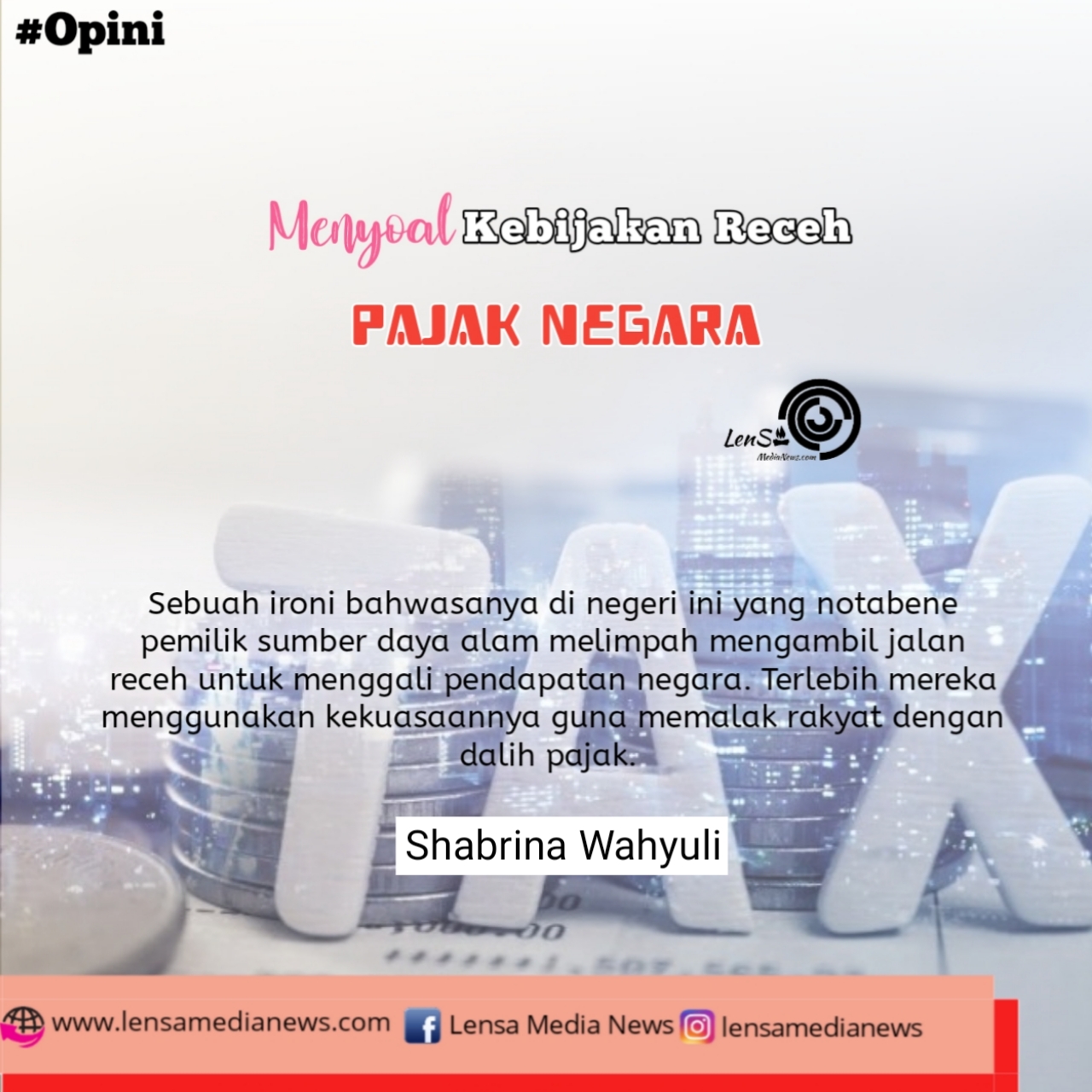 Sebuah ironi bahwasanya di negeri ini yang notabene pemilik sumber daya alam melimpah mengambil jalan receh untuk menggali pendapatan negara. Terlebih mereka menggunakan kekuasaannya guna memalak rakyat dengan dalih pajak.