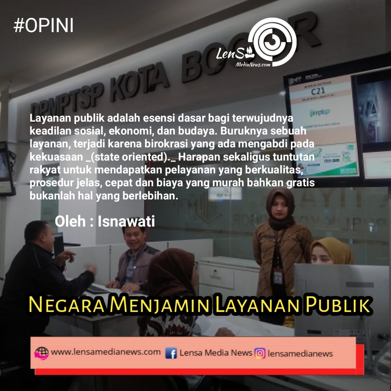 Lensa Media News – Layanan publik adalah esensi dasar bagi terwujudnya keadilan sosial, ekonomi, dan budaya. Buruknya sebuah layanan, terjadi karena birokrasi yang ada mengabdi pada kekuasaan (state oriented). Harapan sekaligus tuntutan rakyat untuk mendapatkan pelayanan yang berkualitas, prosedur jelas, cepat dan biaya yang murah bahkan gratis bukanlah hal yang berlebihan.