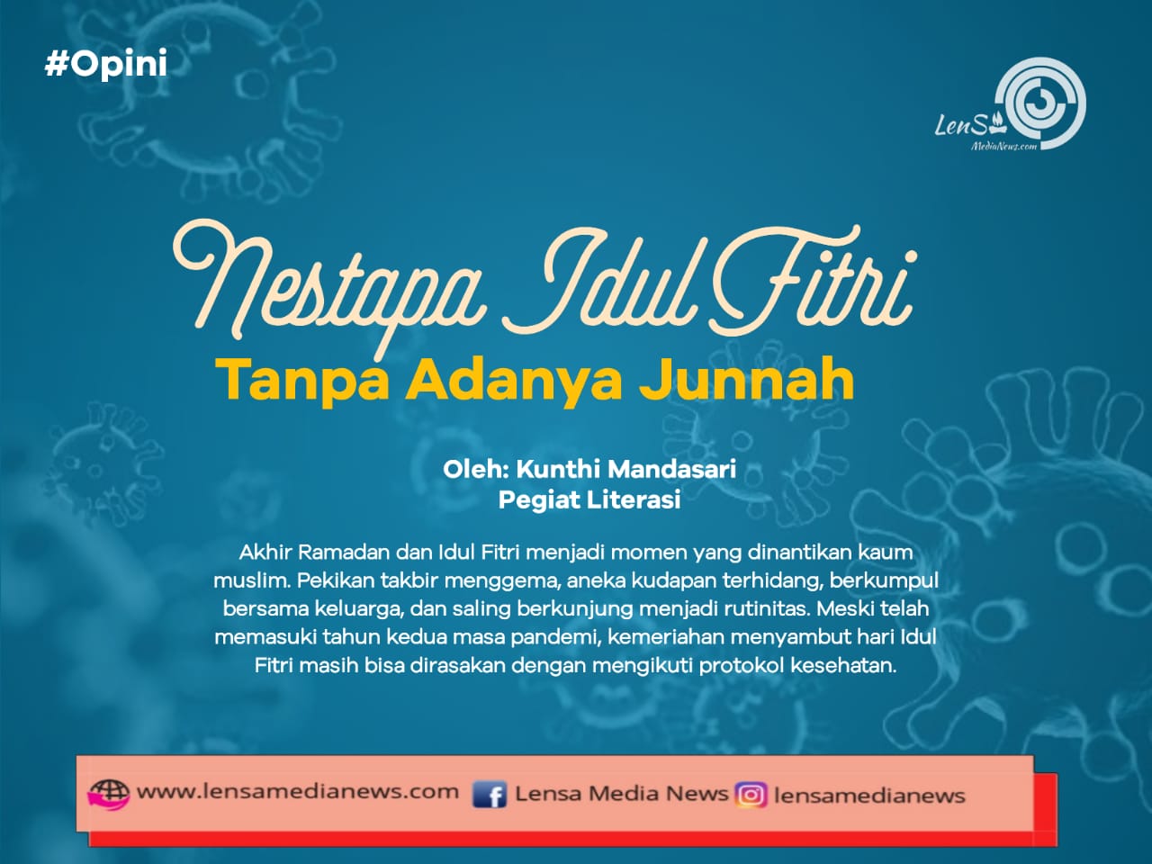 Lensa Media News – Akhir Ramadan dan Idul Fitri menjadi momen yang dinantikan kaum muslim. Pekikan takbir menggema, aneka kudapan terhidang, berkumpul bersama keluarga, dan saling berkunjung menjadi rutinitas. Meski telah memasuki tahun kedua masa pandemi, kemeriahan menyambut hari Idul Fitri masih bisa dirasakan dengan mengikuti protokol kesehatan.