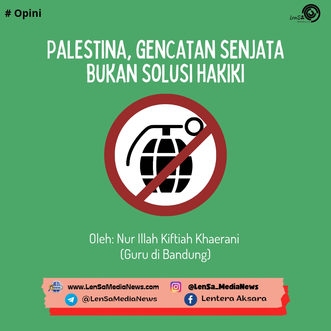 Pada Minggu 19 Januari 2025 gencatan senjata mulai berlaku, sebagai Solusi langkah pertama untuk mengakhiri agresi Zionis. Gencatan senjata berulang kali dilakukan akan tetapi tidak memberikan kebaikan sedikit pun kepada umat Islam. Gencatan senjata bukan karena tekanan Trump kepada Netanyahu, namun karena zionis tidak sanggup mematahkan rakyat Gaza. Mereka kewalahan menghadapi para Mujahid Pelestina. Padahal zionis telah didukung oleh negara gembongnya kapitalisme Amerika Serikat, yang telah mengucurkan banyak bantuan. Yang lebih menyakitkan adalah pemimpin negeri kaum muslimin yang memberi peluang kepada musuh-musuh Allah SWT. Untuk menumpahkan darah, merampas lahan serta menghancurkan rumah kaum muslimin.