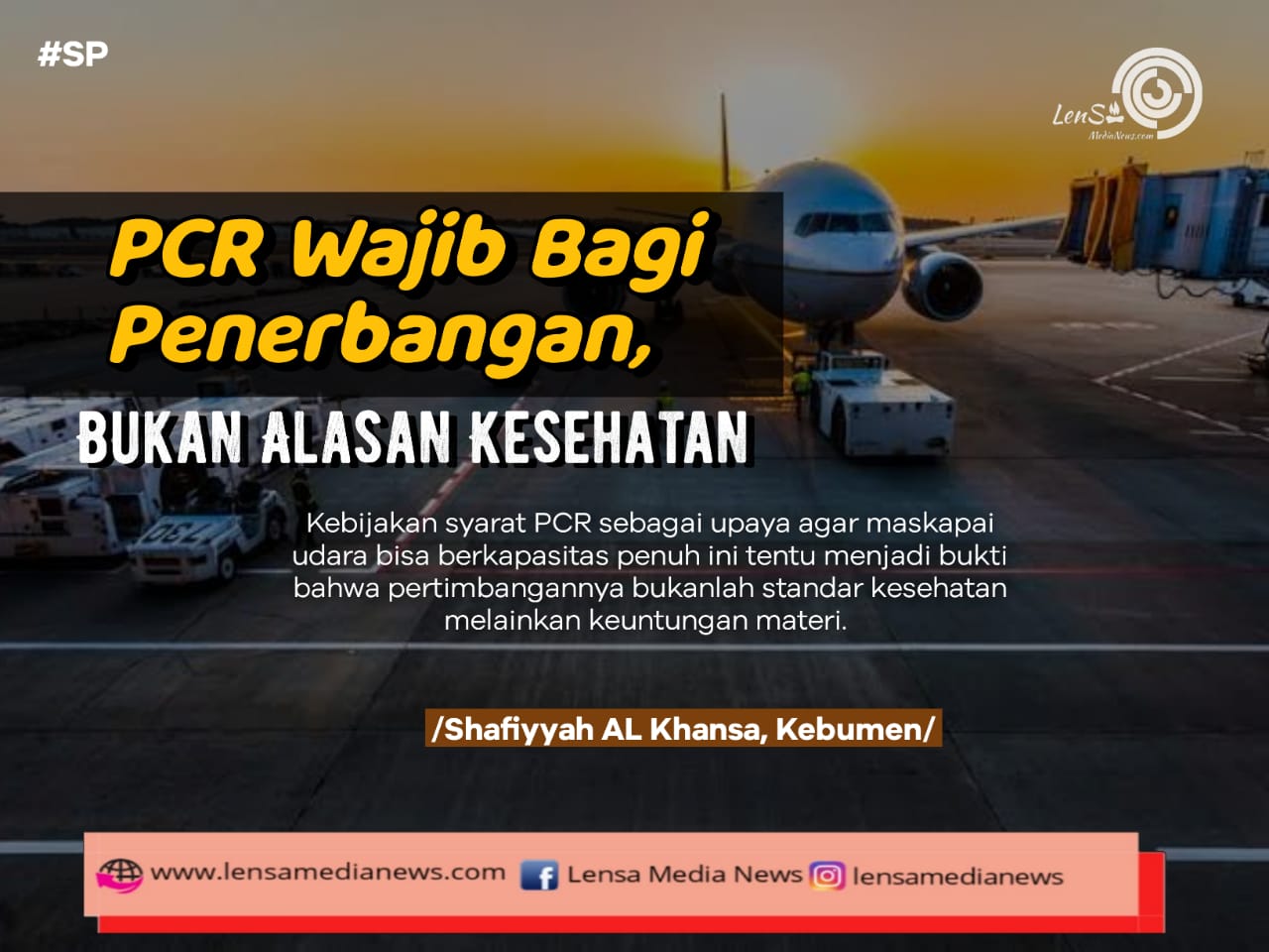 Sebab jika standar yang dipakai adalah standar kesehatan seharusnya tidak hanya moda transportasi udara saja yang disyaratkan adanya PCR. Seperti yang kita ketahui juga bahwa rezim kapitalistik selalu berupaya mencari cara untuk mencapai keuntungan materi.