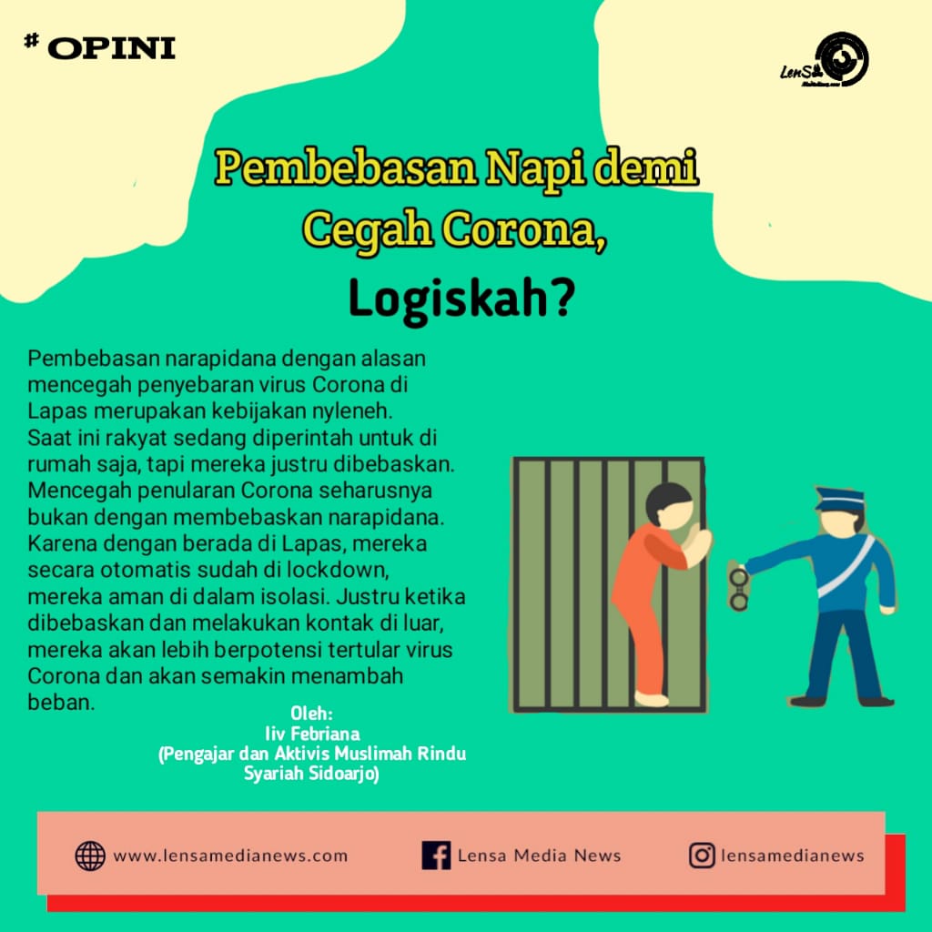 LensaMediaNews – Di tengah isu Corona yang semakin meresahkan muncul polemik di tengah masyarakat terkait pembebasan narapidana (Napi) yang dilakukan untuk mencegah penyebaran Corona di lapas. Bahkan muncul pembelaan bahwa ini dilakukan agar negara mampu menghemat hingga 260 Miliar anggaran yang diperuntukkan untuk Warga Binaan Pemasyarakatan (WBP).