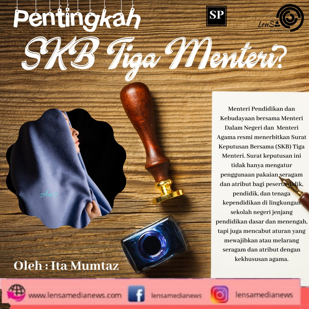 Menteri Pendidikan dan Kebudayaan bersama Menteri Dalam Negeri dan Menteri Agama resmi menerbitkan Surat Keputusan Bersama (SKB) Tiga Menteri. Surat keputusan ini tidak hanya mengatur penggunaan pakaian seragam dan atribut bagi peserta didik, pendidik, dan tenaga kependidikan di lingkungan sekolah negeri jenjang pendidikan dasar dan menengah, tapi juga mencabut aturan yang mewajibkan atau melarang seragam dan atribut dengan kekhususan agama.