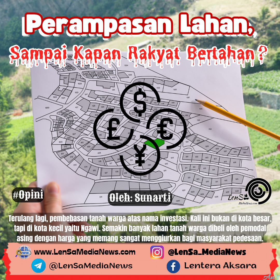 LenSaMediaNews.com – Terulang lagi, pembebasan tanah warga atas nama investasi. Kali ini bukan di kota besar, tapi di kota kecil yaitu Ngawi. Semakin banyak lahan tanah warga dibeli oleh pemodal asing dengan harga yang memang sangat menggiurkan bagi masyarakat pedesaan.
