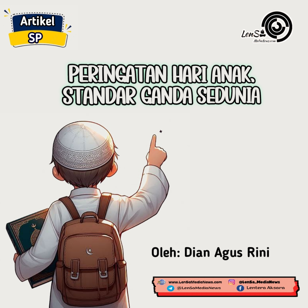 Namun jika kita lebih jeli dalam melihat makna dari peringatan tersebut, jelas hal itu menggambarkan standar ganda barat soal hak anak. Agenda ini hanya kedok untuk menutupi ketidakpedulian mereka terhadap nasib dan masa depan 2 milyar anak usia 0-15 tahun di seluruh dunia.