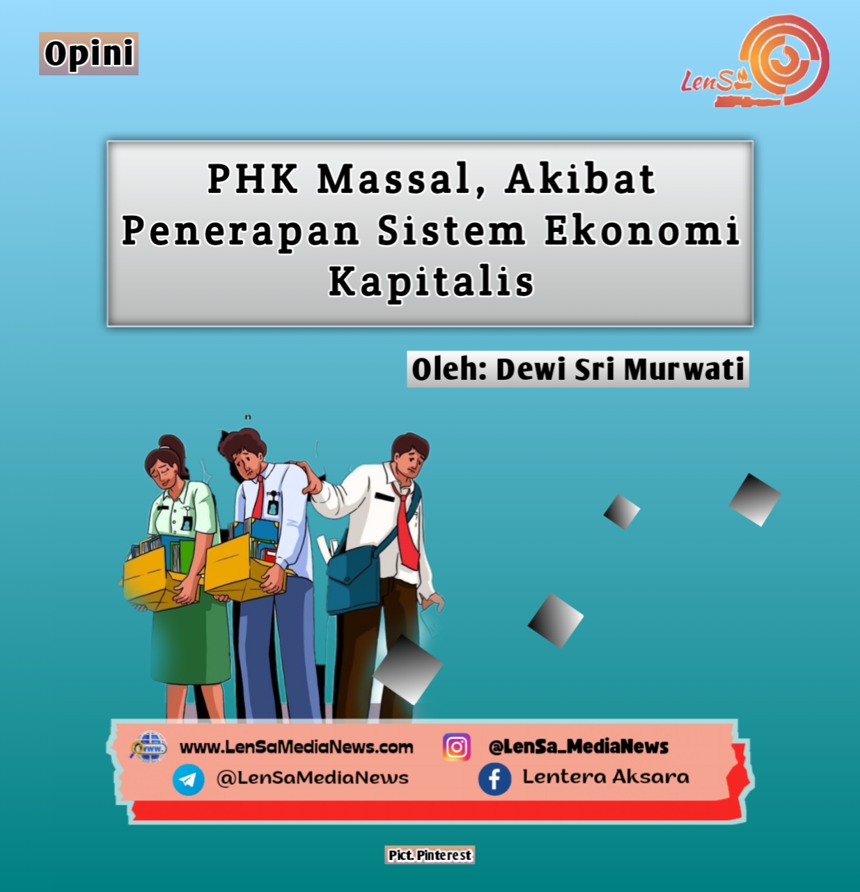 LenSa Media News _ Berdasarkan catatan Konfederasi Serikat Pekerja Nusantara (KSPN) sejak awal tahun 2023 setidaknya terdapat 7.200 buruh yang menjadi korban dari Pemutusan Hubungan Kerja (PHK), 700 diantaranya terkena PHK akibat pabrik tempat bekerja sudah tutup. Mulai tahun 2020 sampai 2023 total buruh yang menjadi korban PHK mencapai 56.976 orang, PHK ini terjadi pada pabrik tekstil, garmen, mebel, ritel, sepatu dan sparepart yang tersebar di daerah Jawa Tengah, Jawa Barat hingga Banten. Diperkirakan yang menjadi penyebab dari PHK adalah akibat dari serbuan produk impor legal bahkan ilegal, ditambah adanya modernisasi mesin pabrik yang meningkatkan potensi PHK dengan alasan efisiensi biaya produksi, cnbcindonesia.com (28/12/2023).