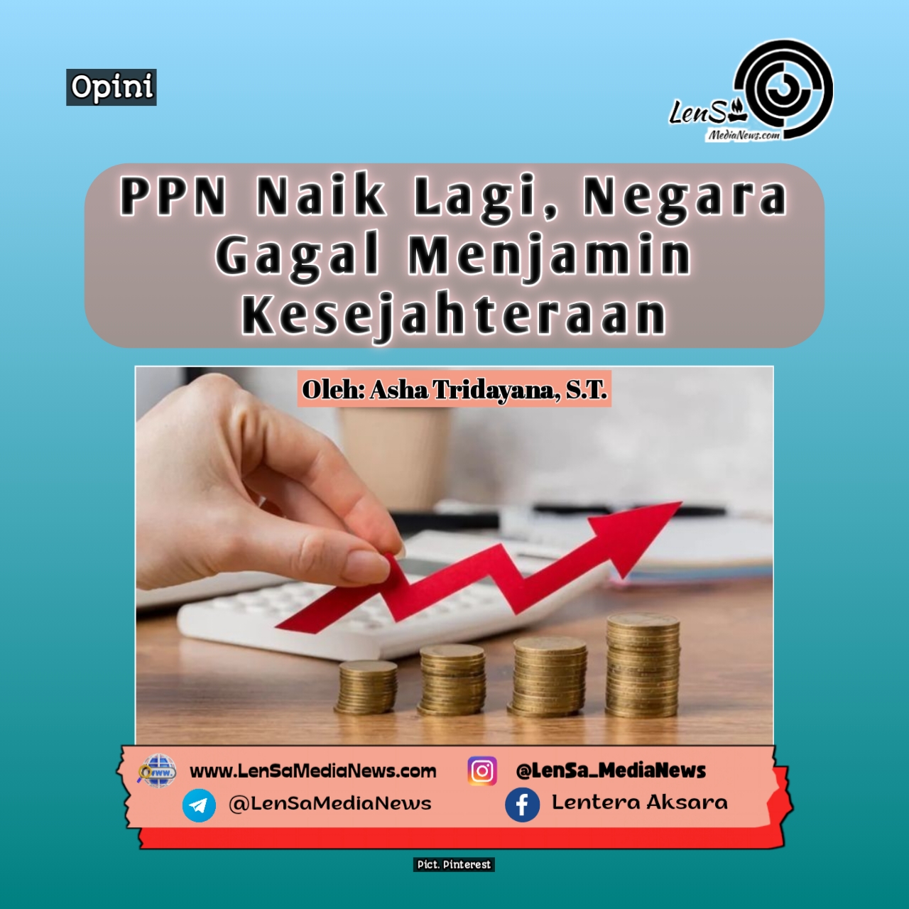 LenSa Media News _ Lagi-lagi rakyat mesti mengalami rentetan kesulitan hidup. Belum cukup dengan kenaikan bahan pangan jelang Ramadhan, kini kabar kenaikan tarif pajak pertambahan nilai (PPN) telah santer diberitakan. Menurut Menteri Koordinator Bidang Perekonomian, Airlangga Hartarto, terjadinya kenaikan PPN sebagai konsekuensi atas hasil pemilu yang dilakukan masyarakat sendiri karena telah memilih pemerintahan baru dengan program berkelanjutan dari pemerintahan sebelumnya yakni Presiden Jokowi.