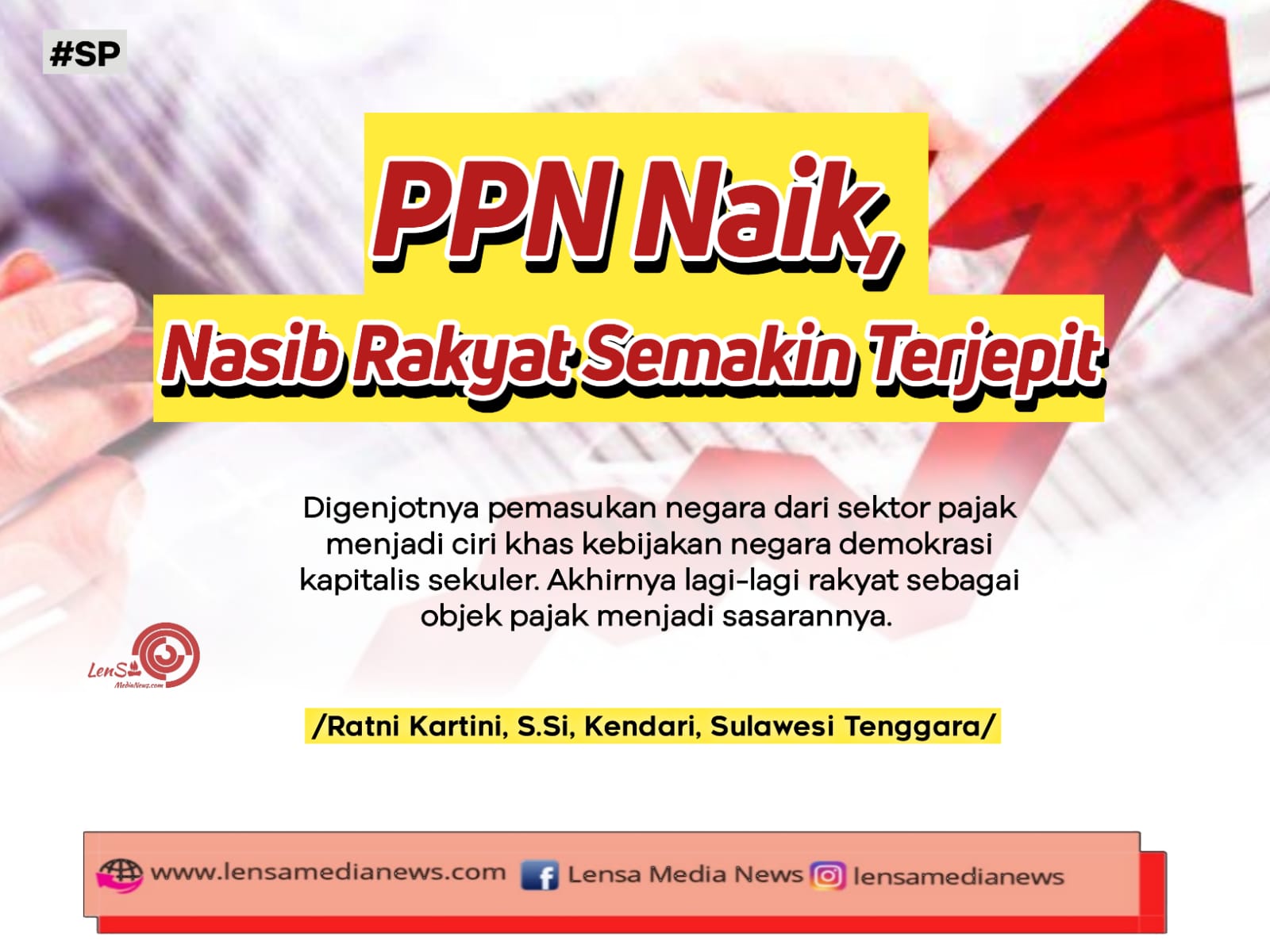 Belum pulih kondisi perekonomian rakyat sebagai efek pandemi yang tiada kunjung berakhir, kini nasib rakyat akan semakin terjepit dengan disahkannya kenaikan pajak pertambahan nilai (PPN) oleh pemerintah. PPN yang tadinya 10 persen, naik menjadi 11 persen mulai 1 April 2022. Ketentuan itu diatur dalam Undang-undang Harmonisasi Peraturan Perpajakan (UU HPP) yang baru saja disahkan Dewan Perwakilan Rakyat (DPR) (cnnindonesia.com, 07/10/2021).